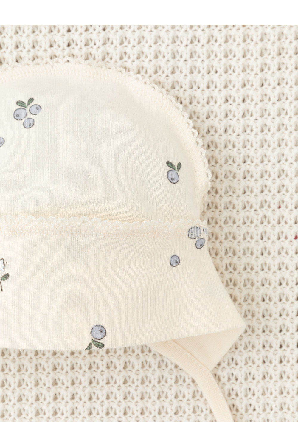 Шапочка чепчик на завязках из мягкого эластичного трикотажа интерлок. Оригинальная набивка выполнена из стойких гипоаллергенных текстильных красителей. Все трикотажные полотна производятся в соответствии с нормами Швейцарского сертификата ЭкоТекс.
