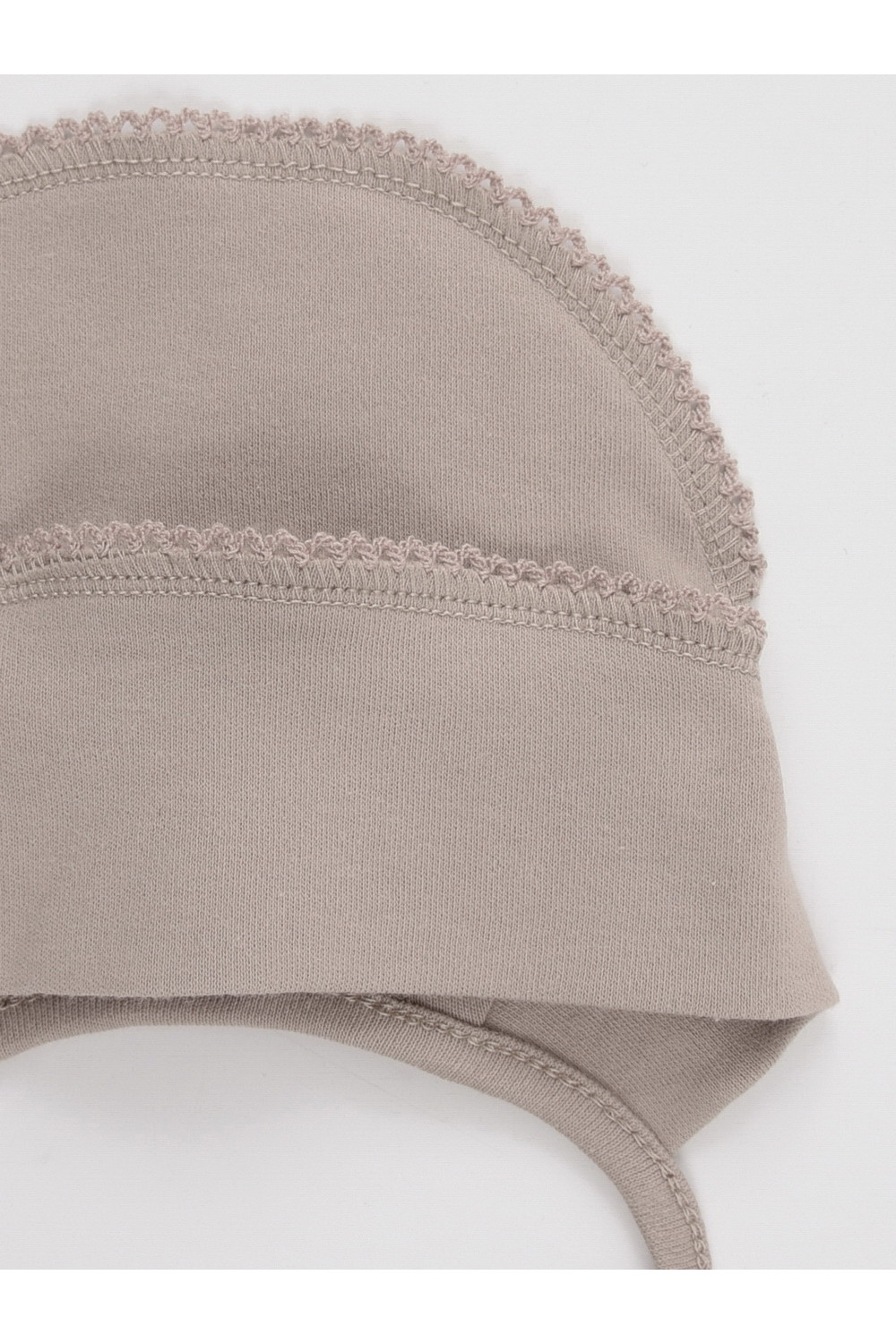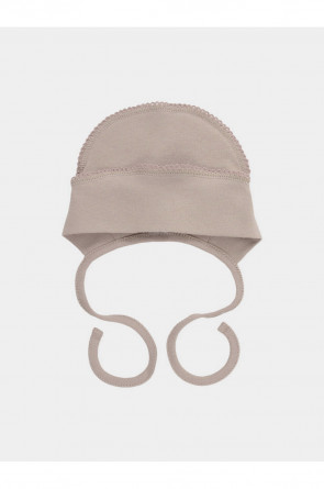 Шапочка на завязках для новорождённых. Изготовлена из мягкого эластичного трикотажа интерлок, произведённого из натурального хлопка. Все трикотажные полотна производятся в соответствии с нормами швейцарского сертификата ЭкоТекс.