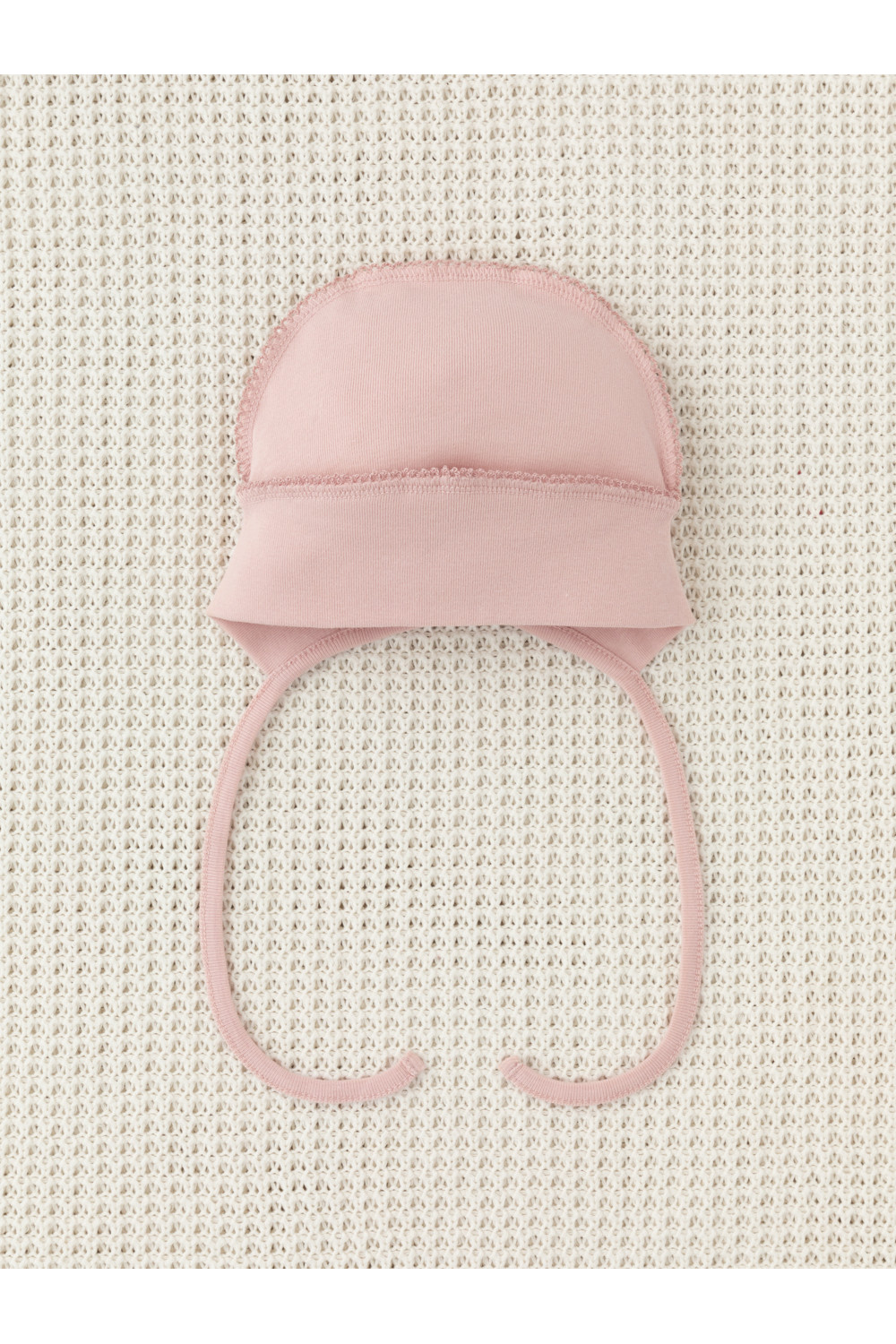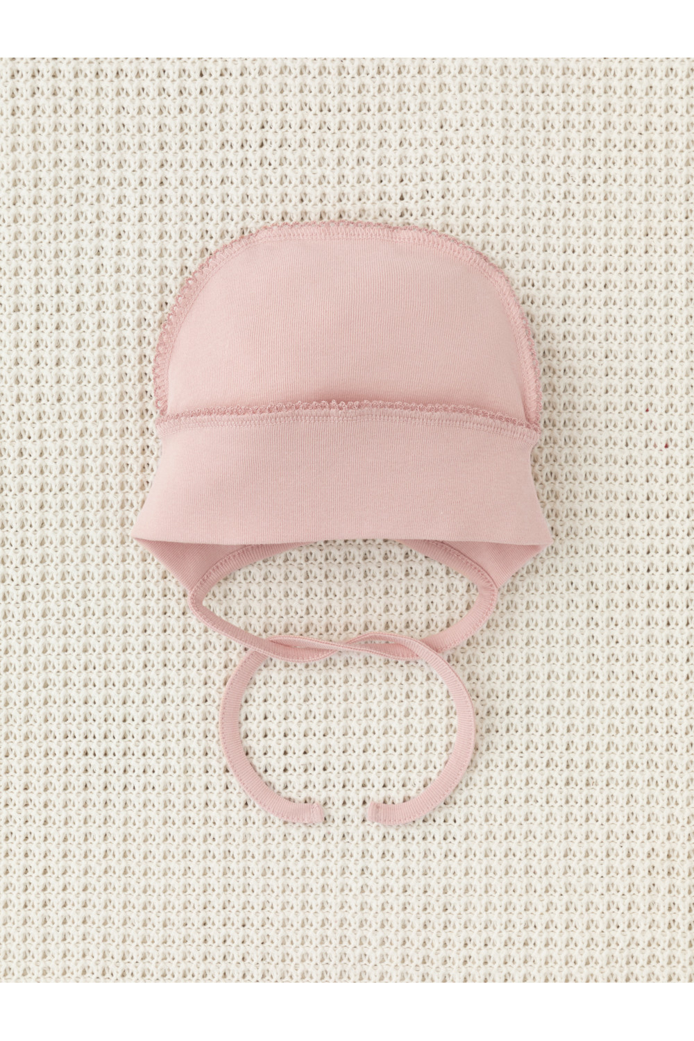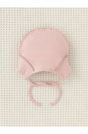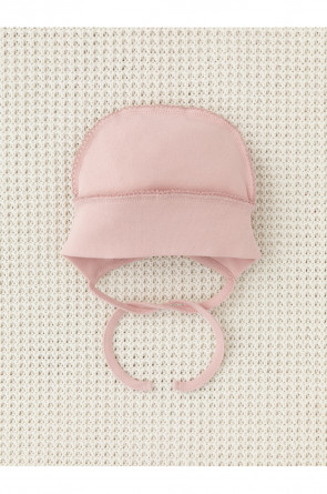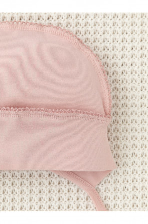 Шапочка на завязках для новорождённых. Изготовлена из мягкого эластичного трикотажа интерлок, произведённого из натурального хлопка. Все трикотажные полотна производятся в соответствии с нормами швейцарского сертификата ЭкоТекс.