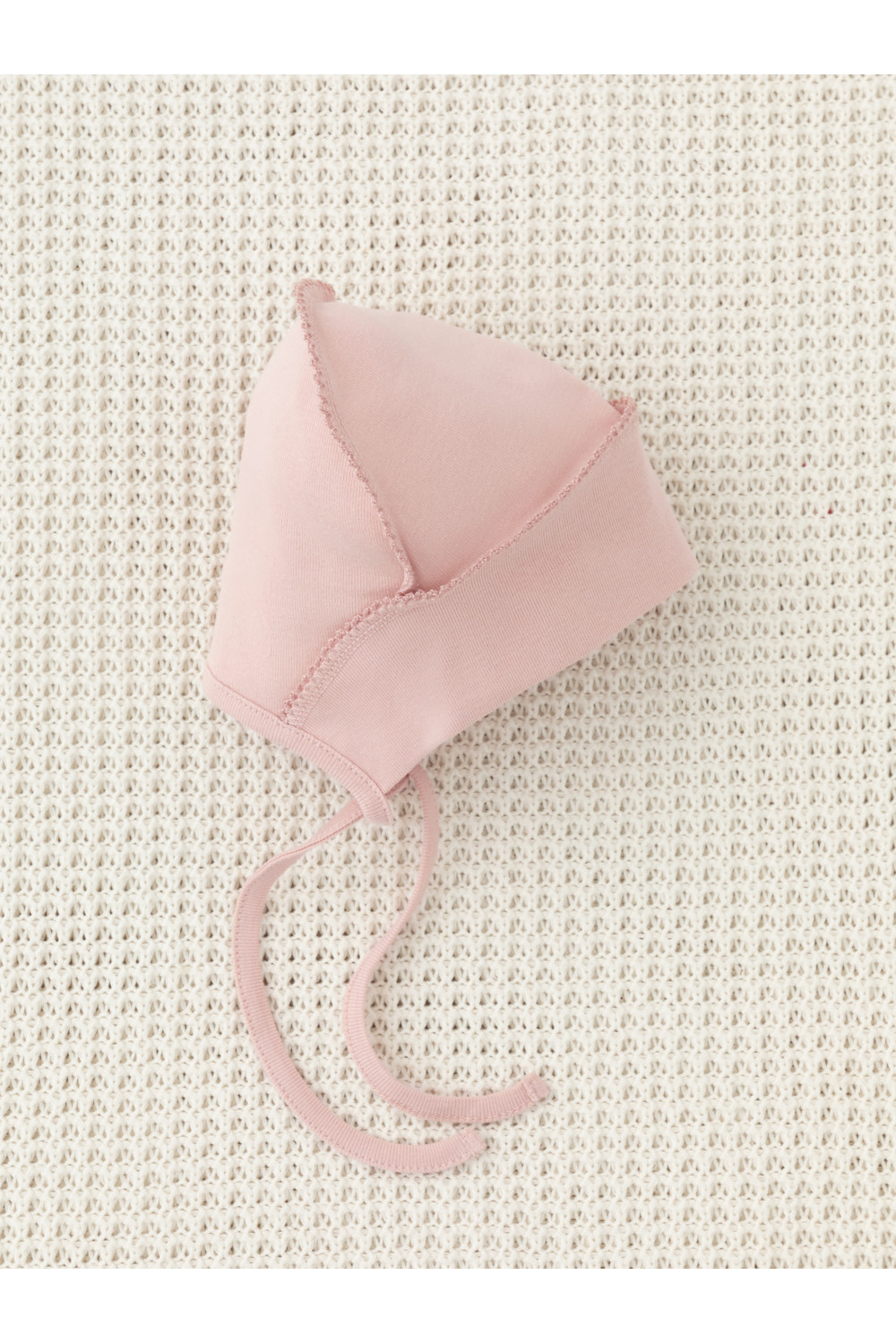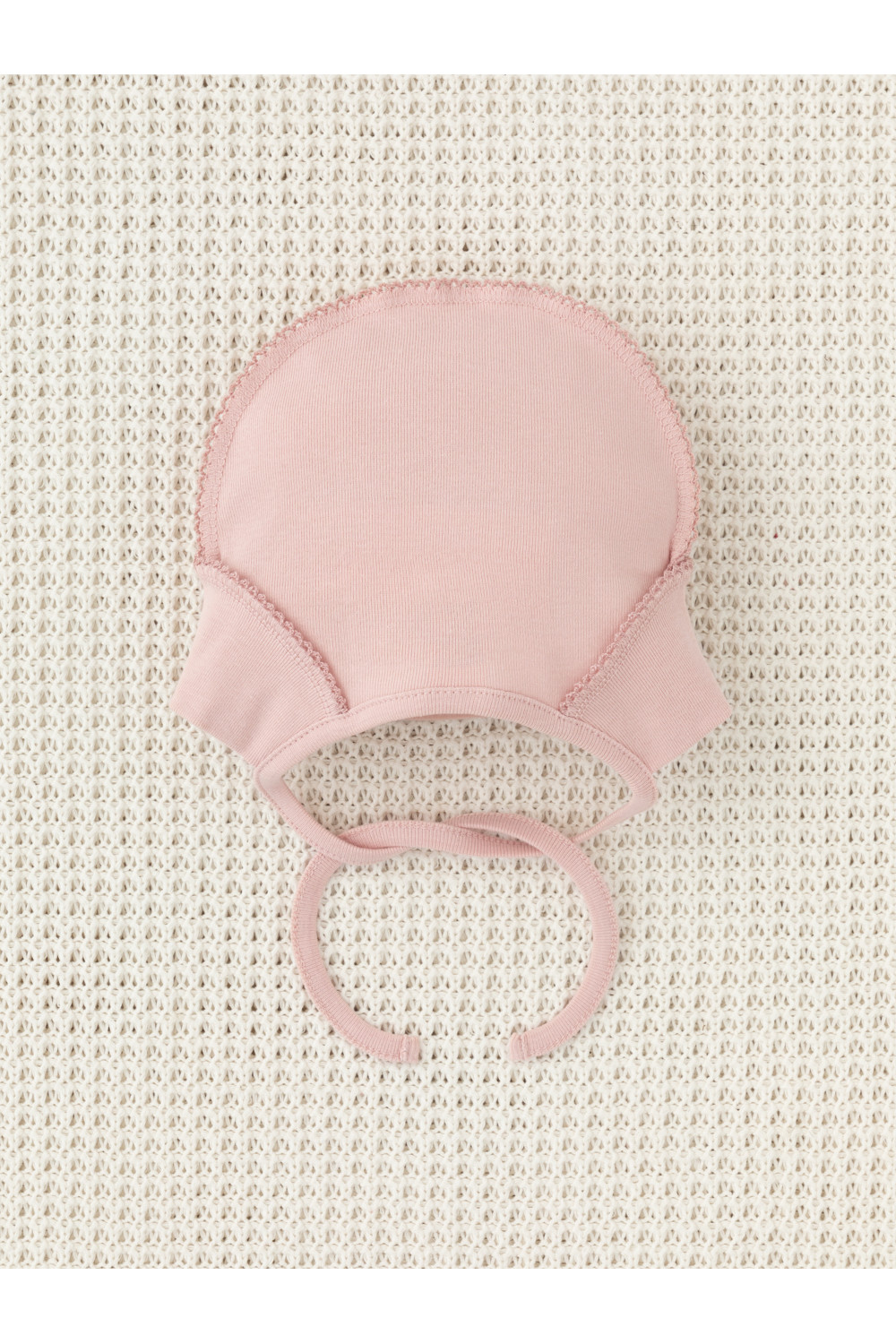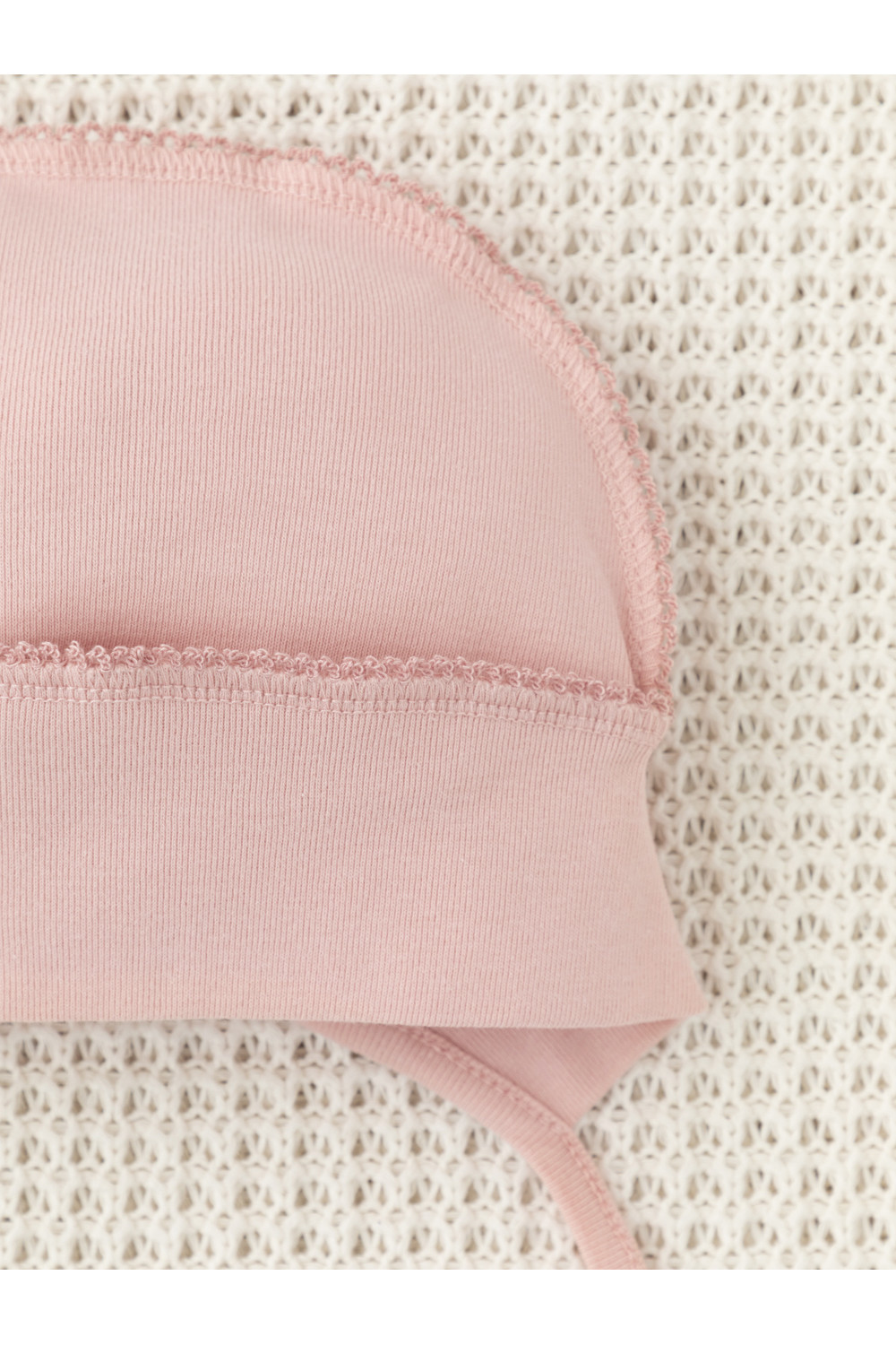 Шапочка на завязках для новорождённых. Изготовлена из мягкого эластичного трикотажа интерлок, произведённого из натурального хлопка. Все трикотажные полотна производятся в соответствии с нормами швейцарского сертификата ЭкоТекс.