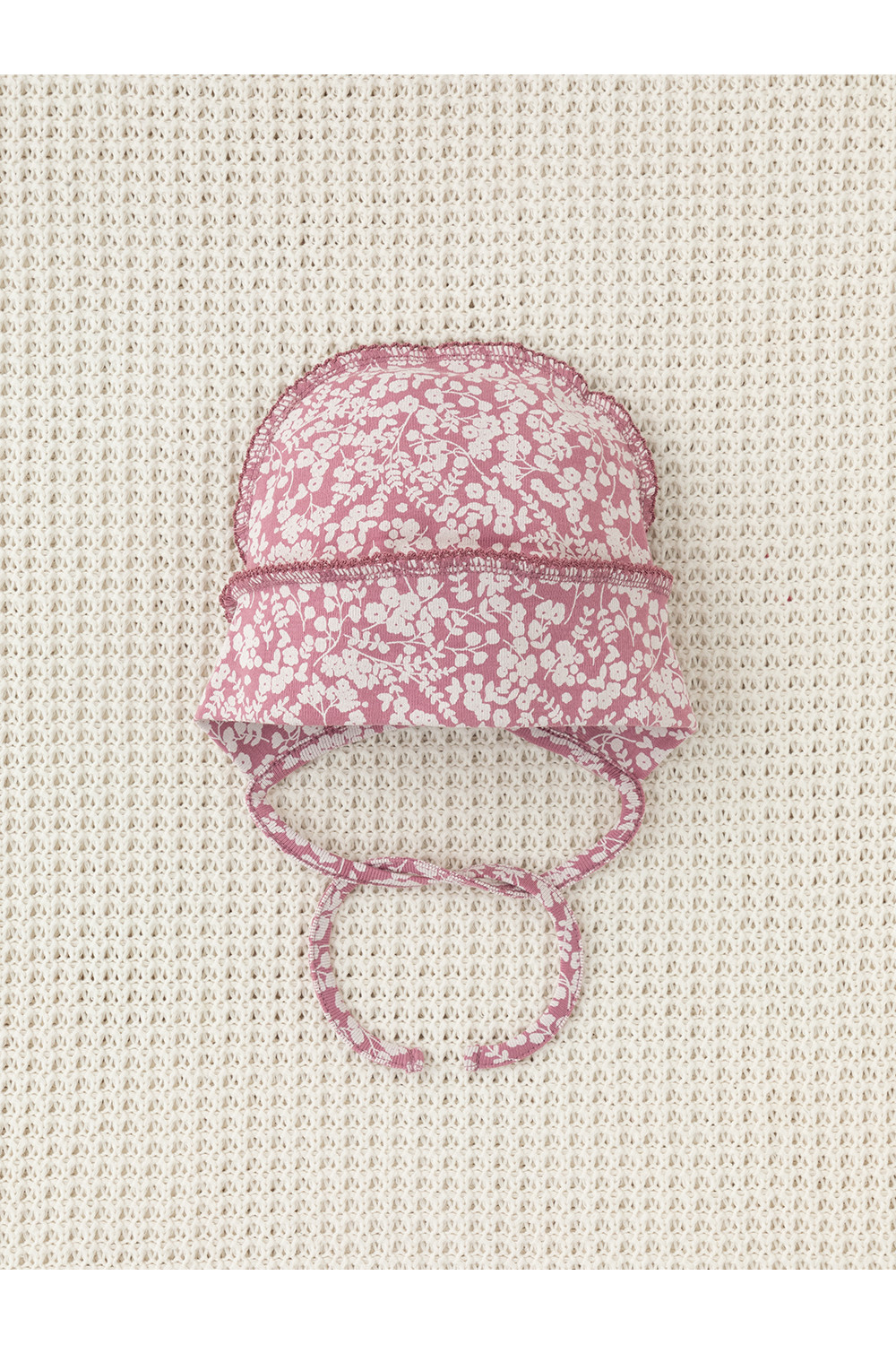 Шапочка на завязках для новорождённых. Изготовлена из мягкого эластичного трикотажа интерлок, произведённого из натурального хлопка. Все трикотажные полотна производятся в соответствии с нормами швейцарского сертификата ЭкоТекс.