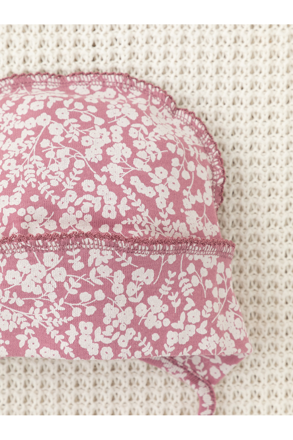 Шапочка на завязках для новорождённых. Изготовлена из мягкого эластичного трикотажа интерлок, произведённого из натурального хлопка. Все трикотажные полотна производятся в соответствии с нормами швейцарского сертификата ЭкоТекс.