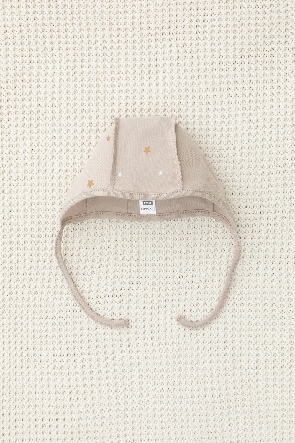 Шапочка чепчик на завязках из мягкого эластичного трикотажа интерлок. Все трикотажные полотна производятся в соответствии с нормами Швейцарского сертификата ЭкоТекс.