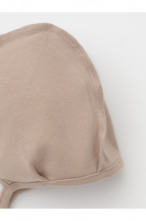 Шапочка на завязках для новорождённых. Изготовлена из мягкого эластичного трикотажа интерлок, произведённого из натурального хлопка. Все трикотажные полотна производятся в соответствии с нормами швейцарского сертификата ЭкоТекс.