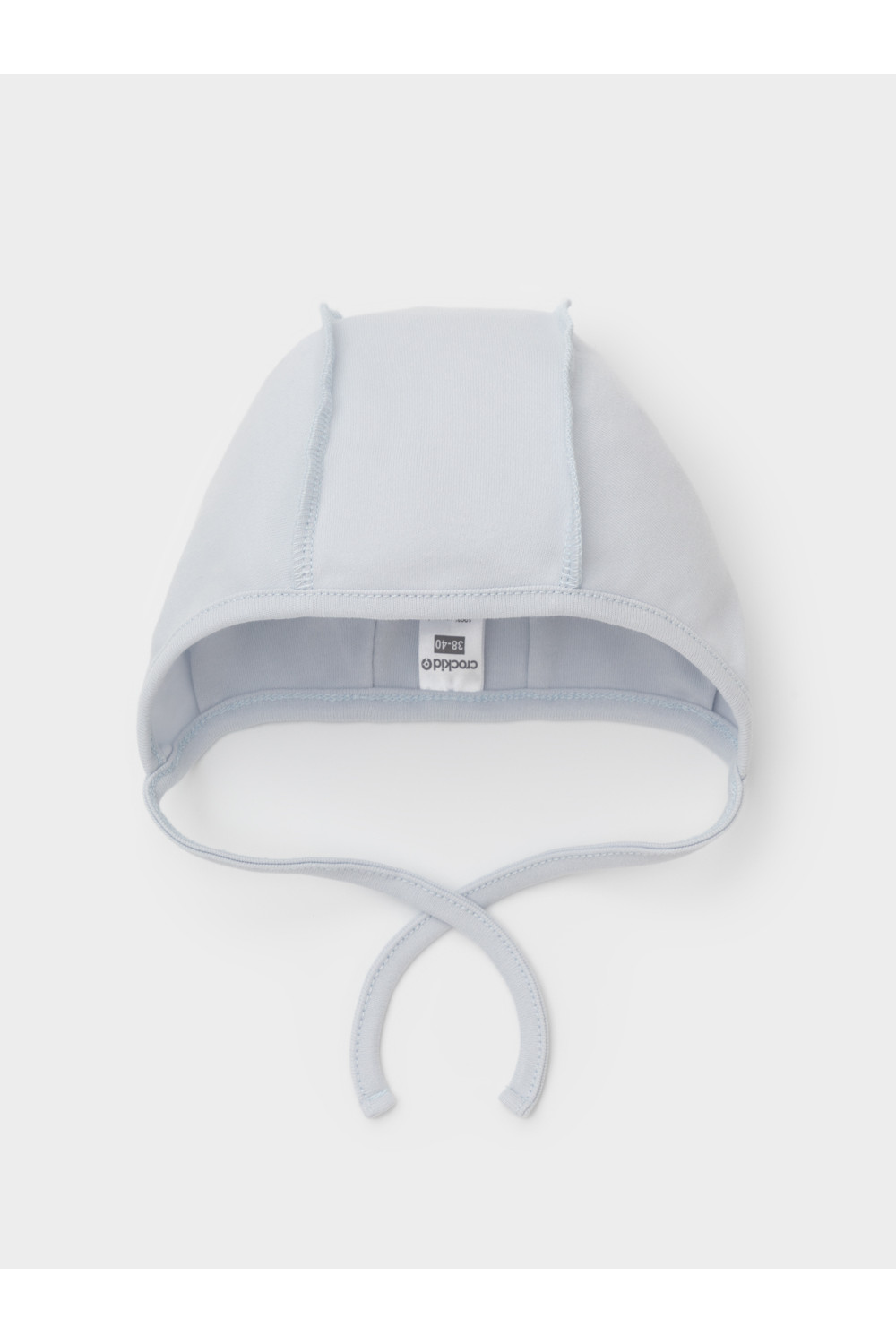 Шапочка на завязках для новорождённых. Изготовлена из мягкого эластичного трикотажа интерлок, произведённого из натурального хлопка. Все трикотажные полотна производятся в соответствии с нормами швейцарского сертификата ЭкоТекс.