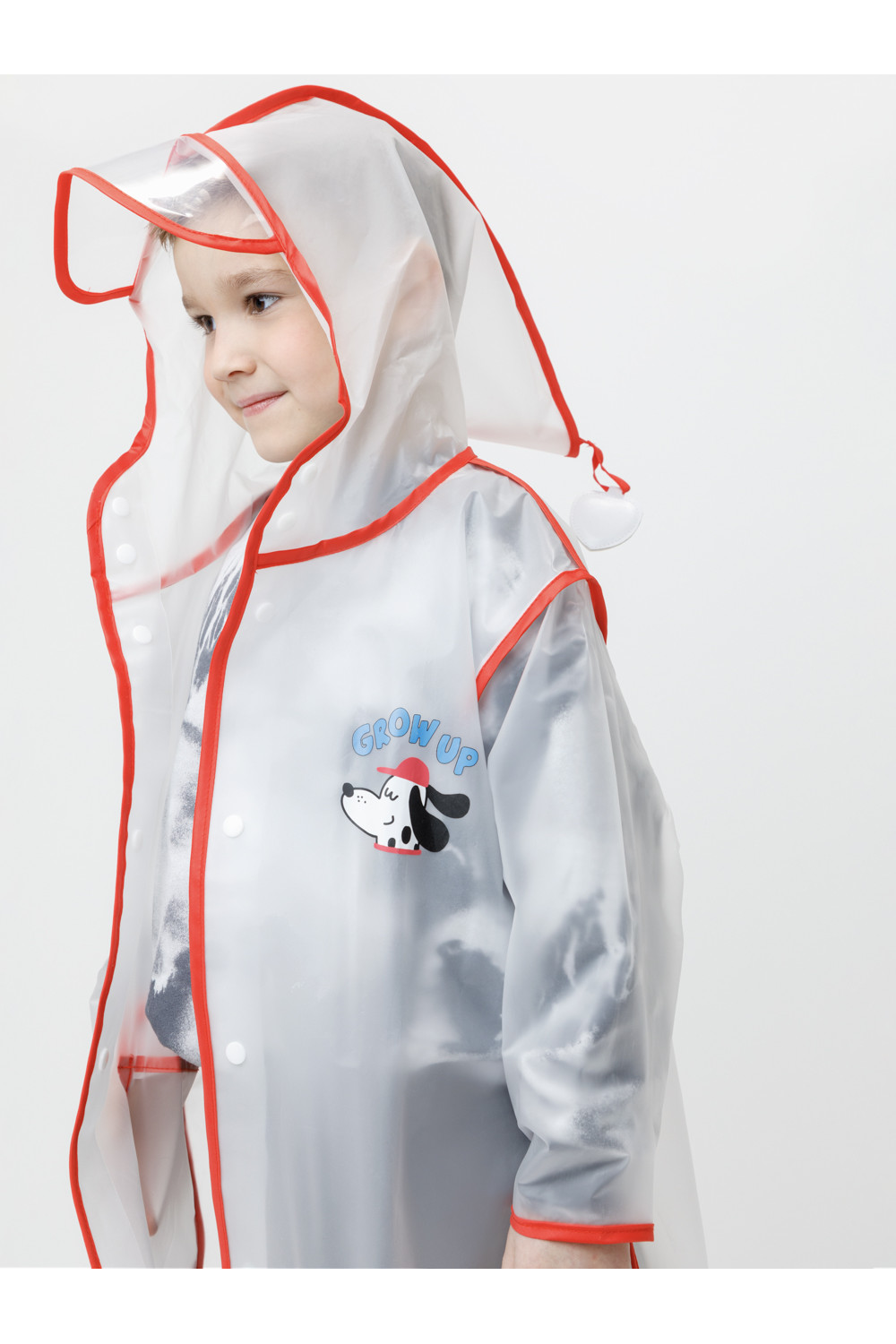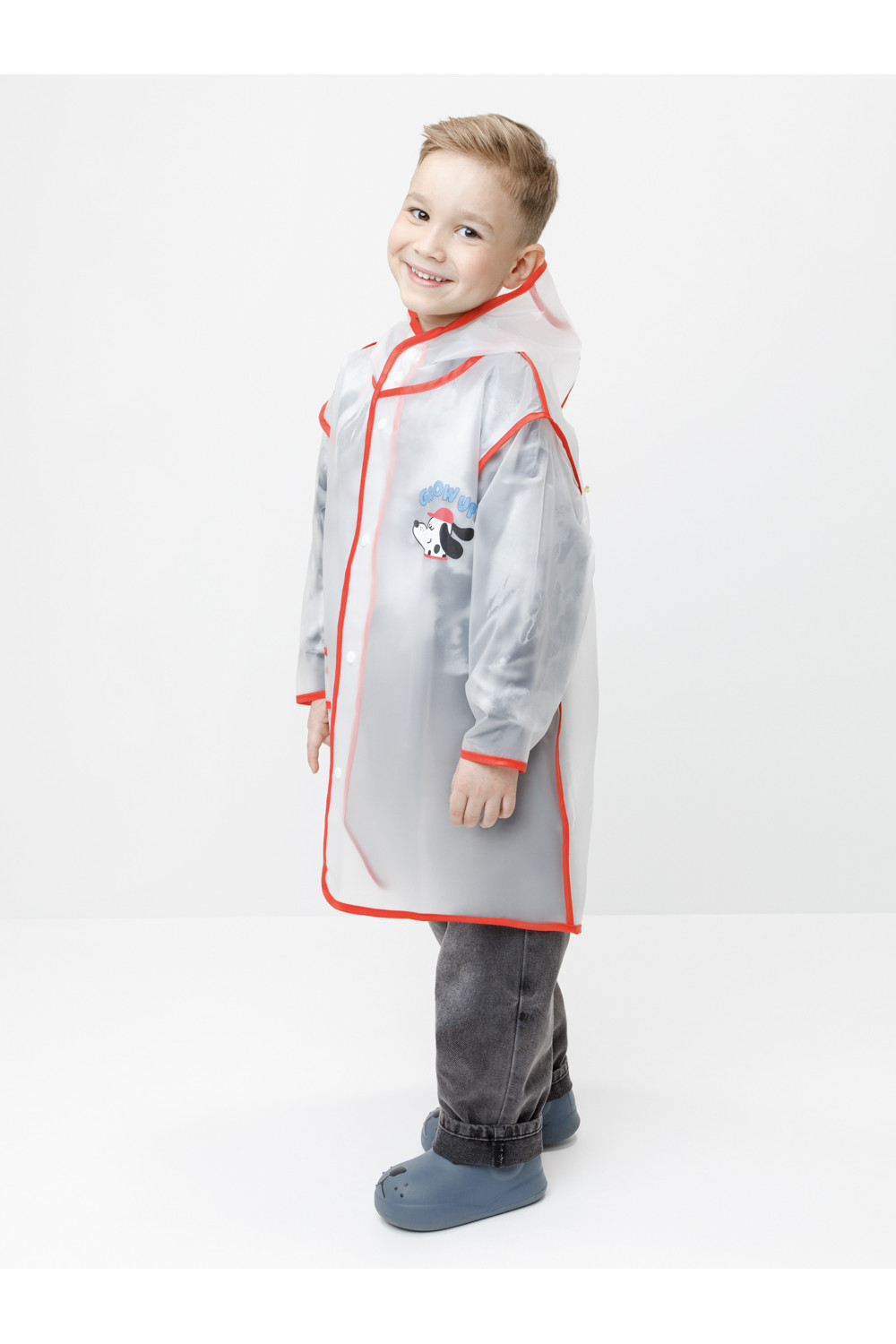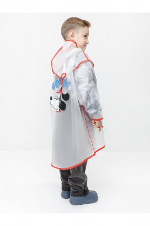 Лёгкий водонепроницаемый дождевик с капюшоном. Выполнен из плотного износостойкого материала ЭВА. В дождливую погоду защищает одежду ребёнка от влаги и грязи, помогая ей оставаться сухой и чистой. Спереди застёгивается на кнопки. Сбоку предусмотрен кармашек для мелочей. Украшен яркой окантовкой и забавным принтом. Свободный крой подходит для детей с разным типом телосложения. Дождевик упакован в удобный мешочек для хранения, поэтому его легко взять с собой на прогулку, в детский сад или в школу.