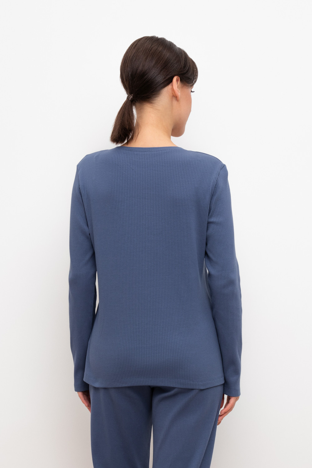 Комфортный джемпер из трикотажного полотна в рубчик.