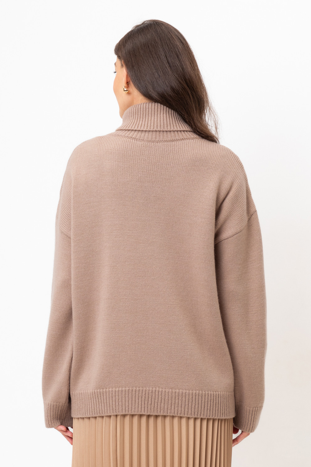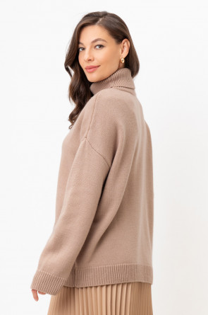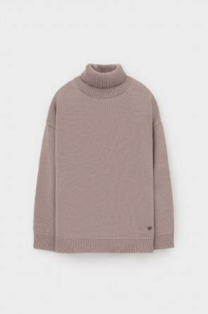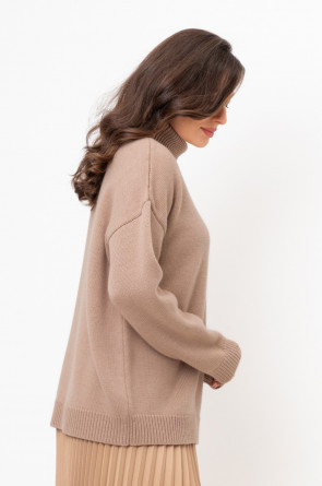 Уютный вязаный джемпер из полушерстяной пряжи. Шерсть в составе сохраняет тепло, а волокна акрила добавляют мягкость и объем. Выполнен гладью. Комфортная длинные цельнокроеные рукава придают изделию объем.