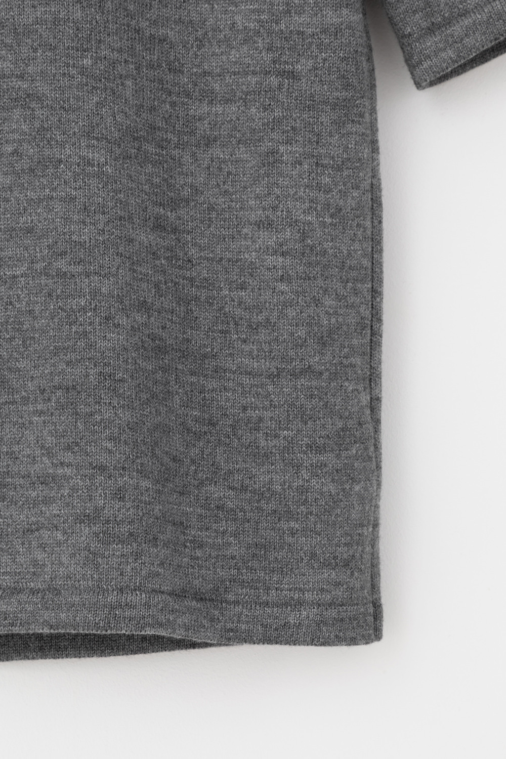 Джемпер в стиле прямой футболки, воротником-стойкой и короткими рукавами. Прямой силуэт, стандартная длина. Средняя плотность вязания, пластичная фактура. Выполнен гладью из мягкой полушерстяной пряжи. Шерсть в составе сохраняет тепло, а благодаря волокнам акрила изделие мягкое и дольше сохраняет форму.
