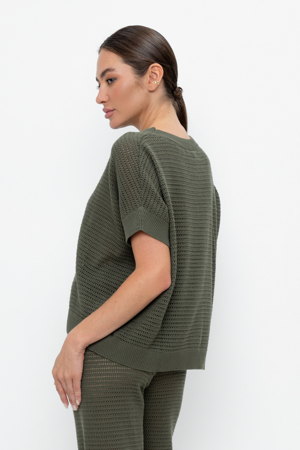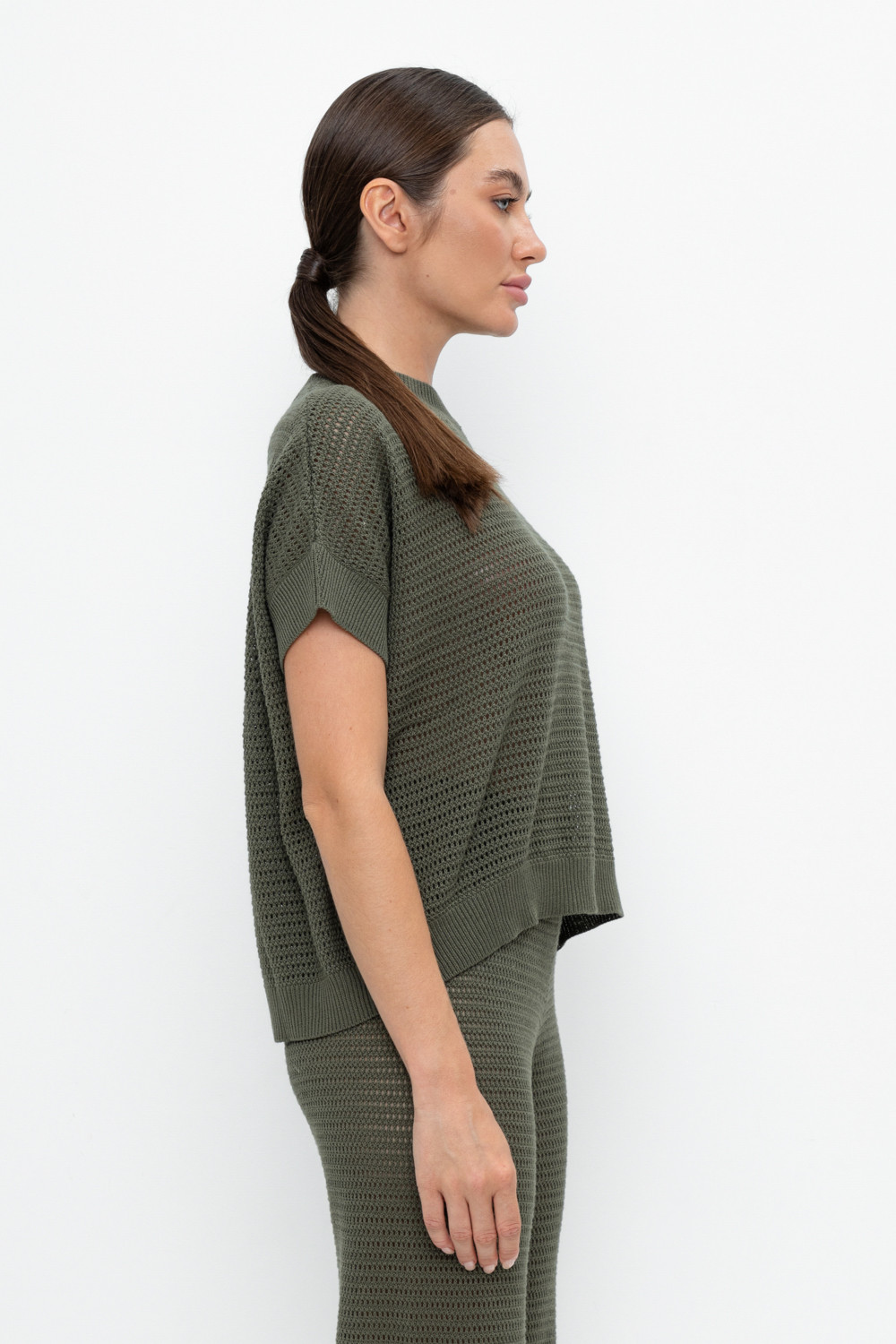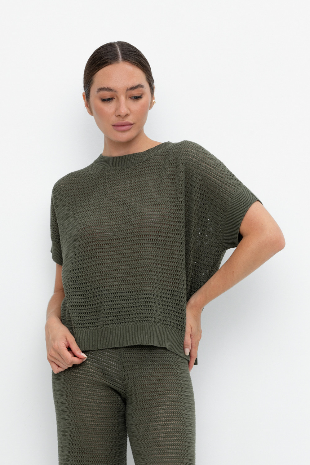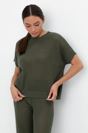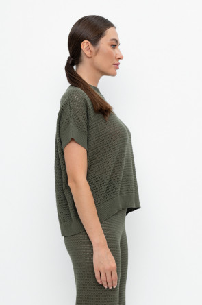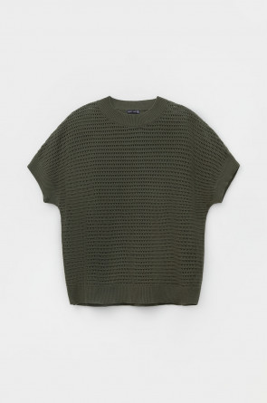 Укороченный вязаный ажурный джемпер. Состав 50% хлопок, 50% акрил. Благодаря акрилу в составе изделие не пилингуется.