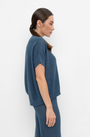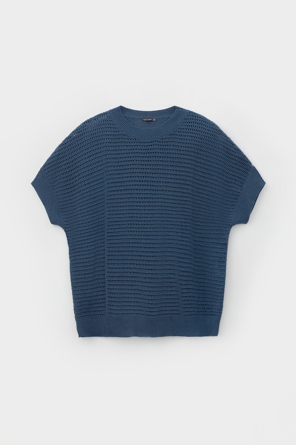 Укороченный вязаный ажурный джемпер. Состав 50% хлопок, 50% акрил. Благодаря акрилу в составе изделие не пилингуется.