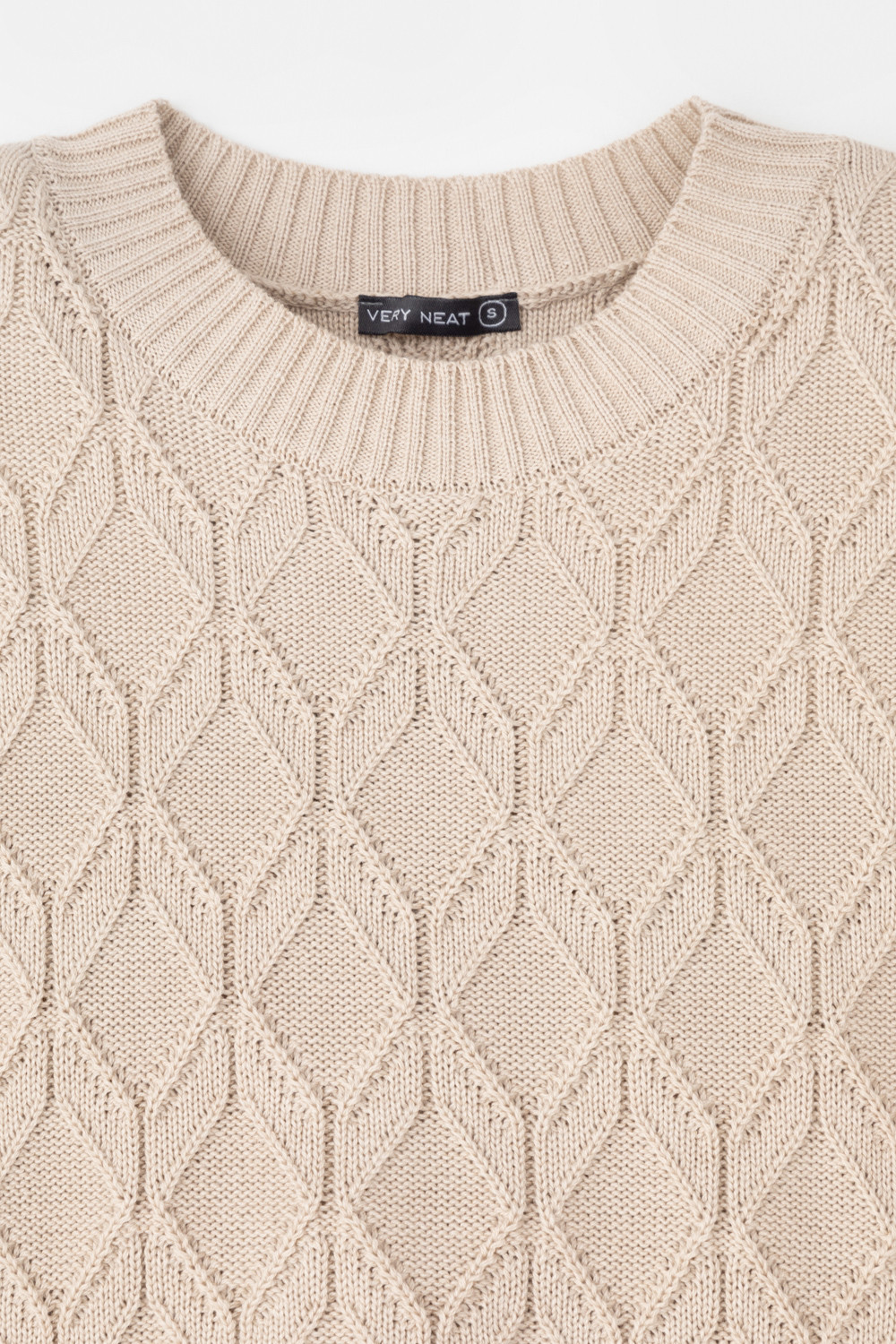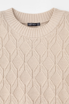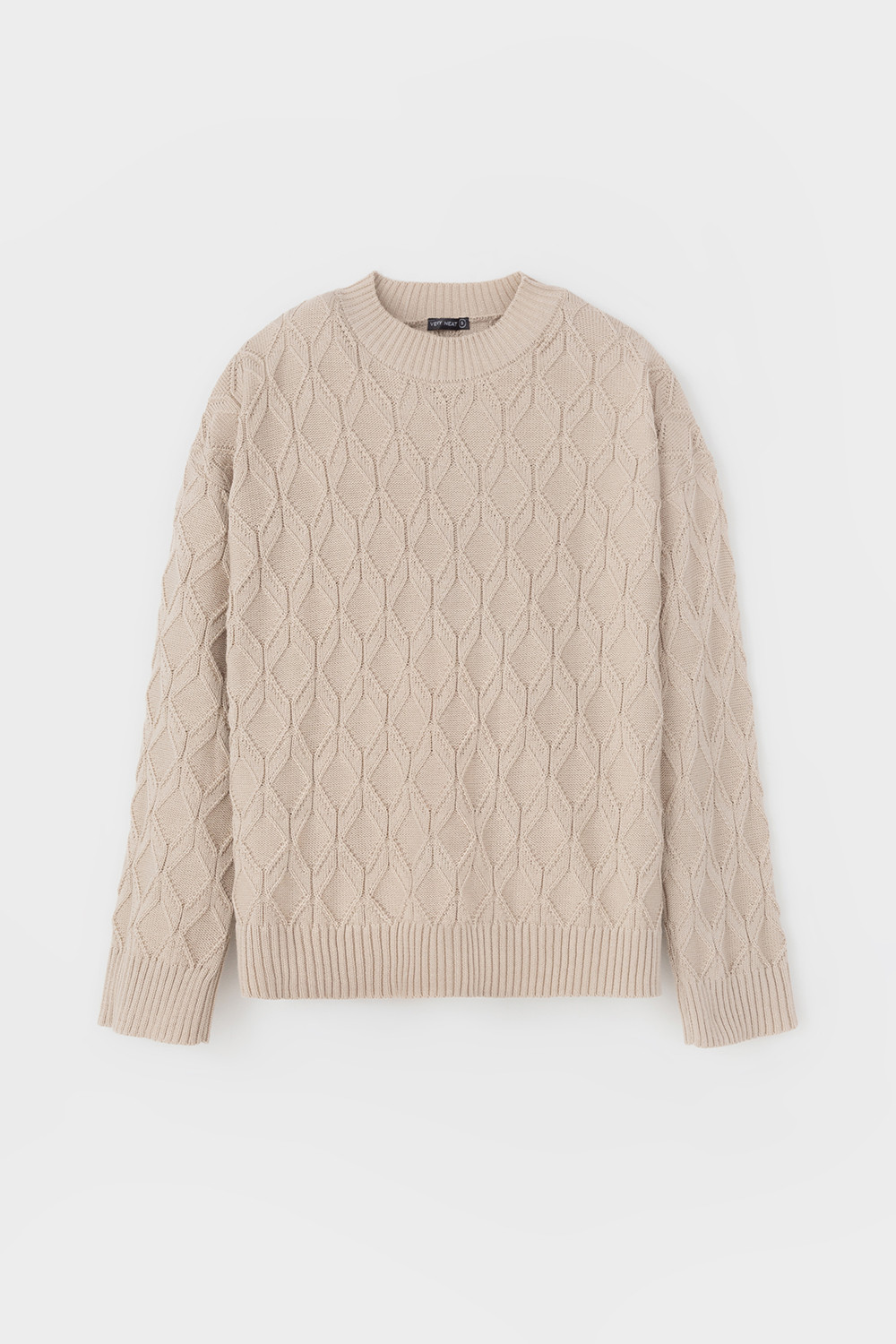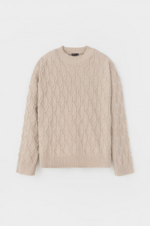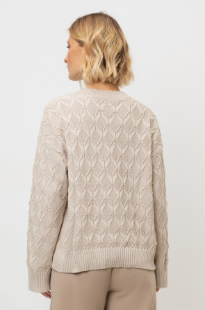 Вязаный джемпер из хлопковой пряжи. Вязаный хлопок сохраняет тепло, а волокна акрила добавляют мягкость. Спущенные рукава придают объем.