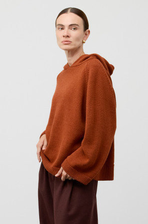 Мягкий джемпер с капюшоном, изготовленный из высококачественной пряжи. Уникальное сочетание шерсти и акрила дарит ощущение уюта, приятно прилегает к телу, является гипоаллергенным и отлично сохраняет форму. Капюшон добавляет стильную особенность изделию и становится практичным дополнением для ветренной погоды.