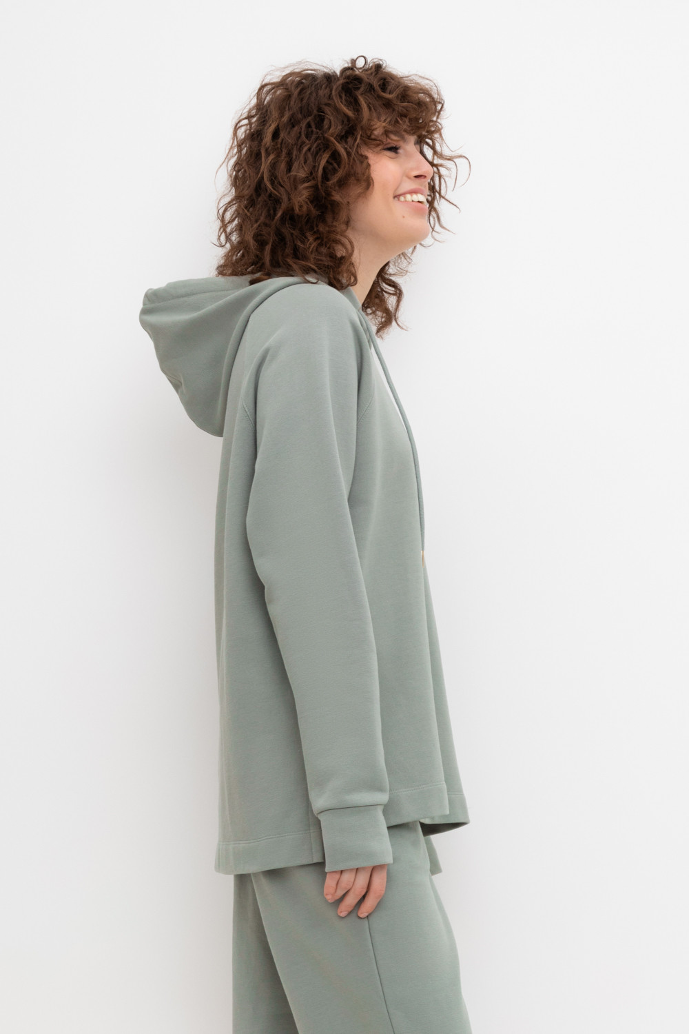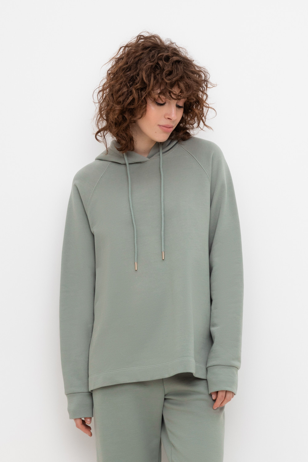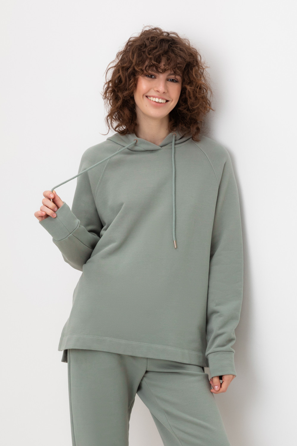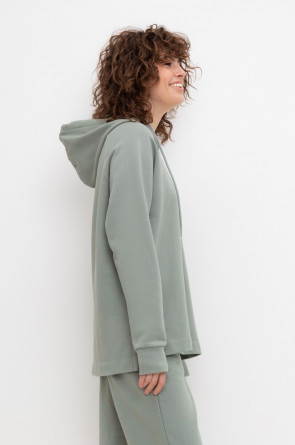 Теплая толстовка с капюшоном из мягкого футера трехнитки. В боковых швах разрезы