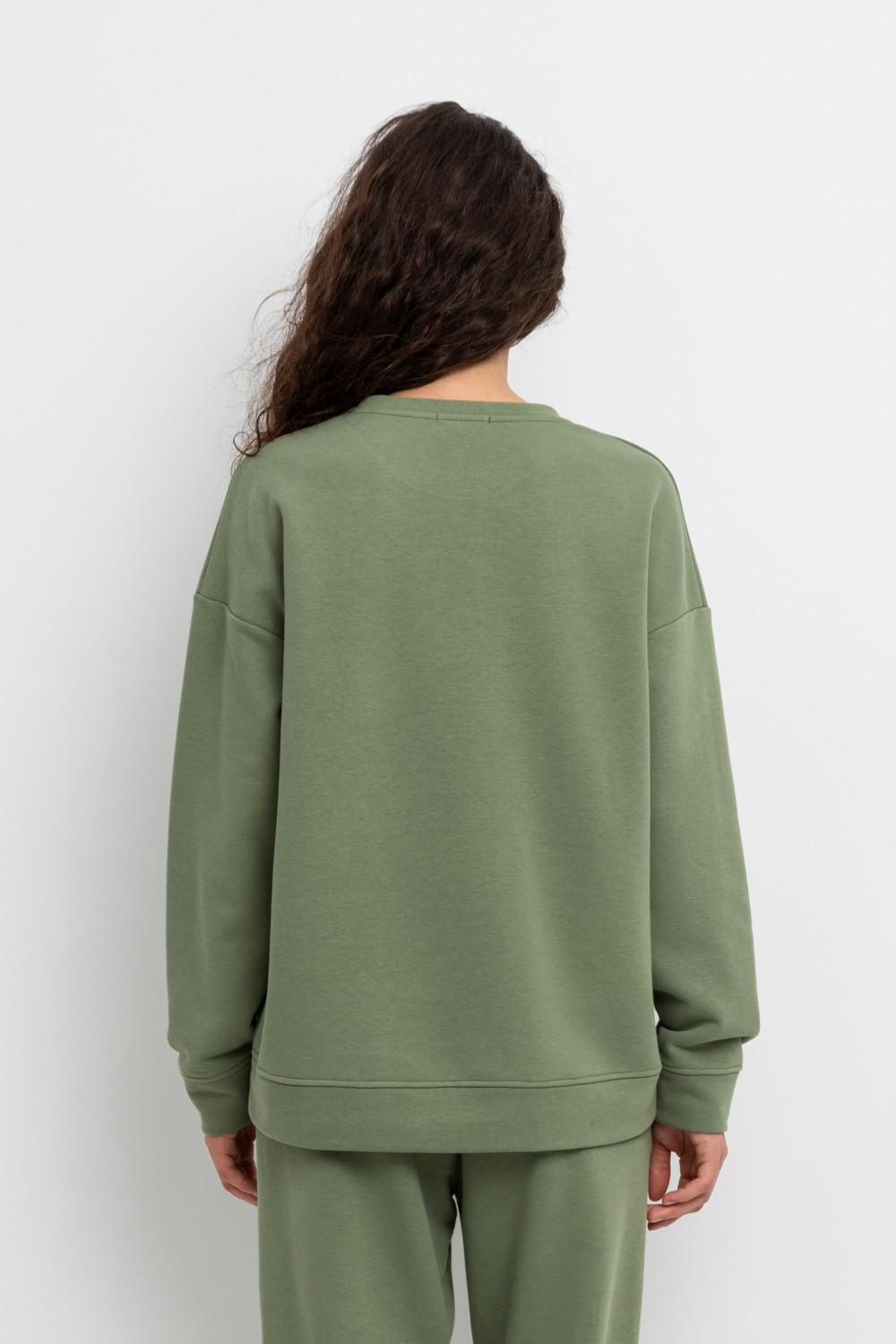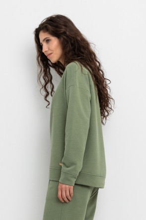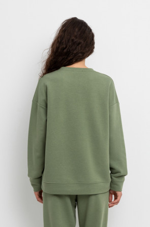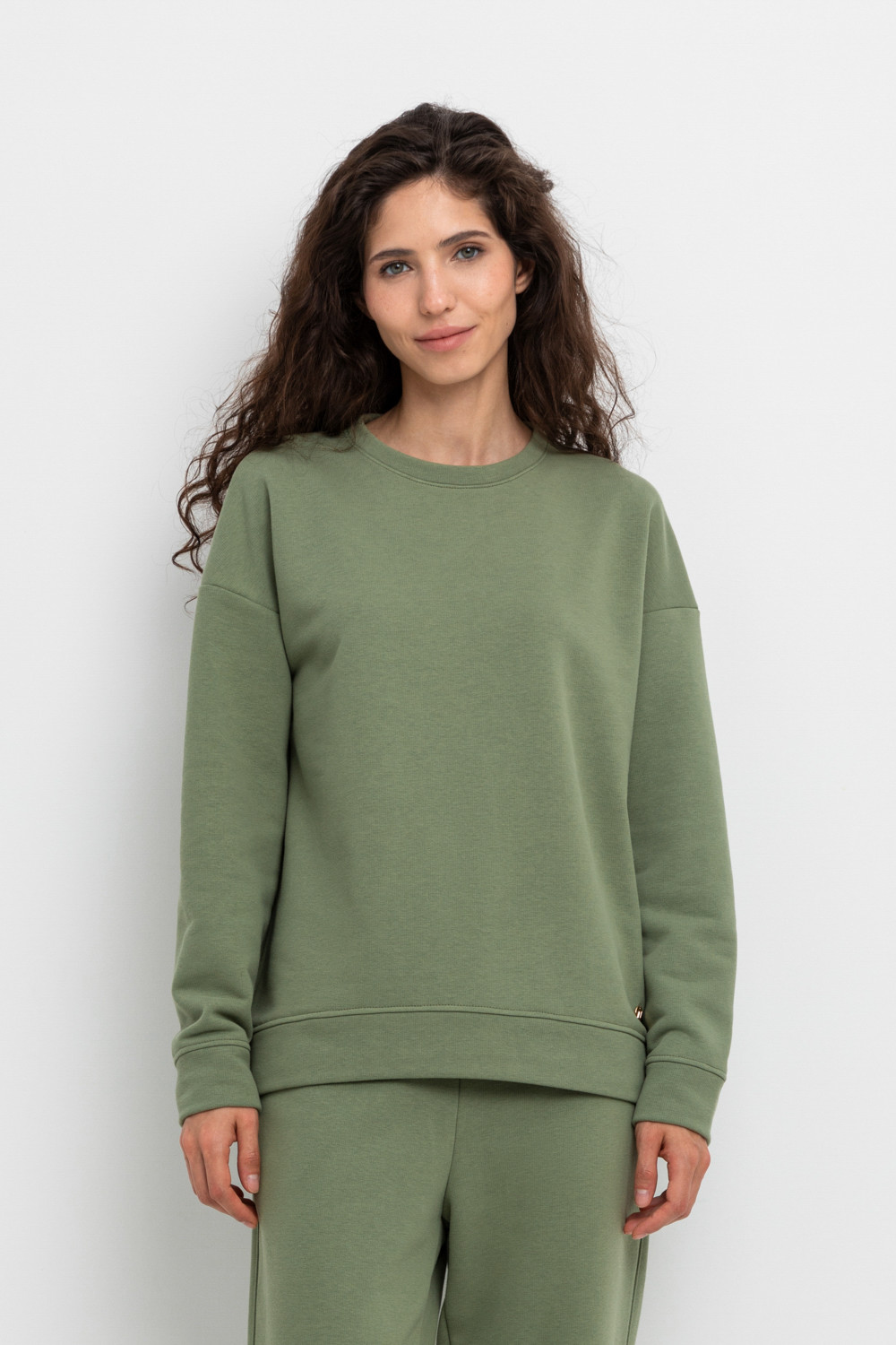 Мягкая женская толстовка из футера трехнитки. Спущенные рукава и манжеты добавляют объем.