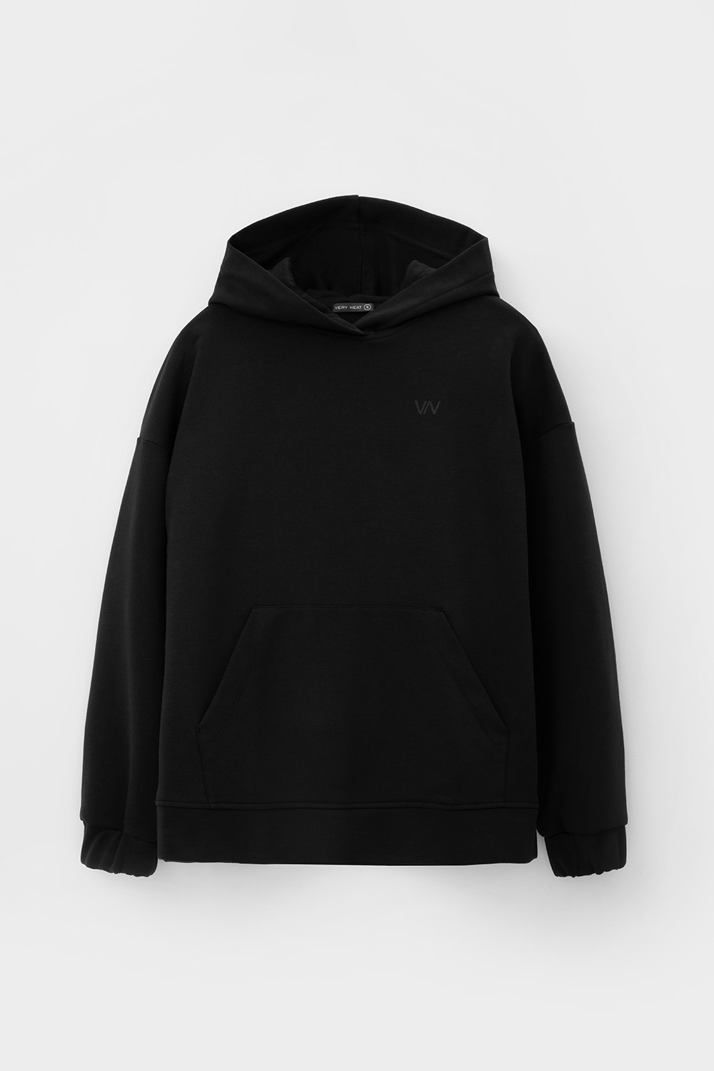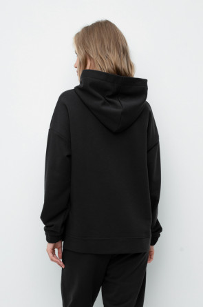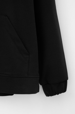 Теплая толстовка с капюшоном, карманом кенгуру и спущенным плечом из мягкого футера трехнитки. Уютный капюшон с подкладом из супрема. В боковых швах разрезы