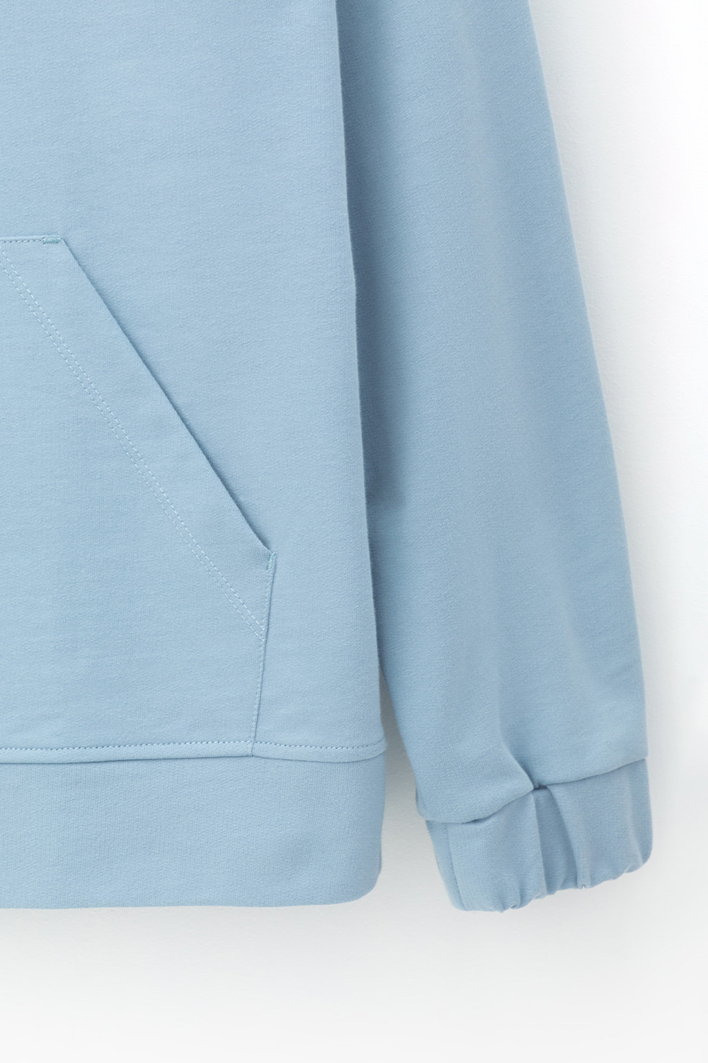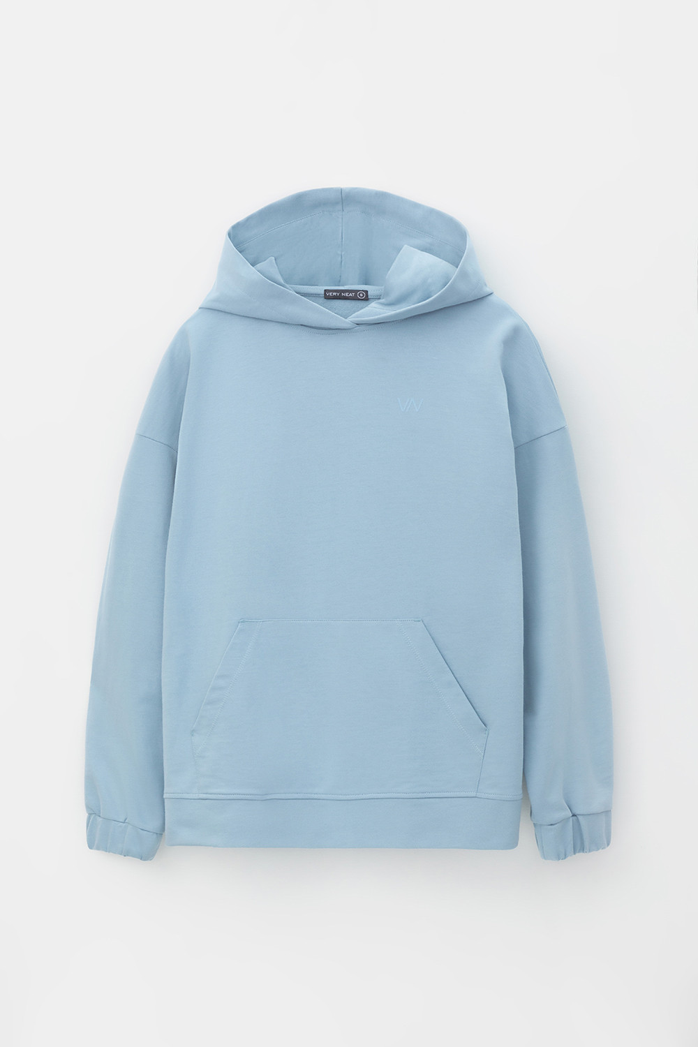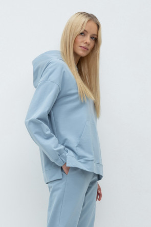 Теплая толстовка с капюшоном, карманом кенгуру и спущенным плечом из мягкого футера трехнитки. Уютный капюшон с подкладом из супрема. В боковых швах разрезы