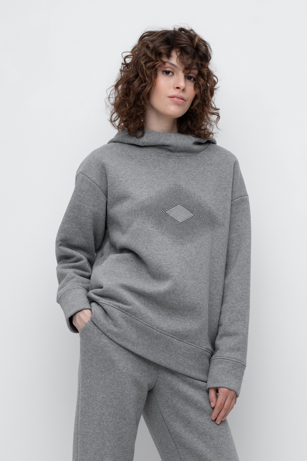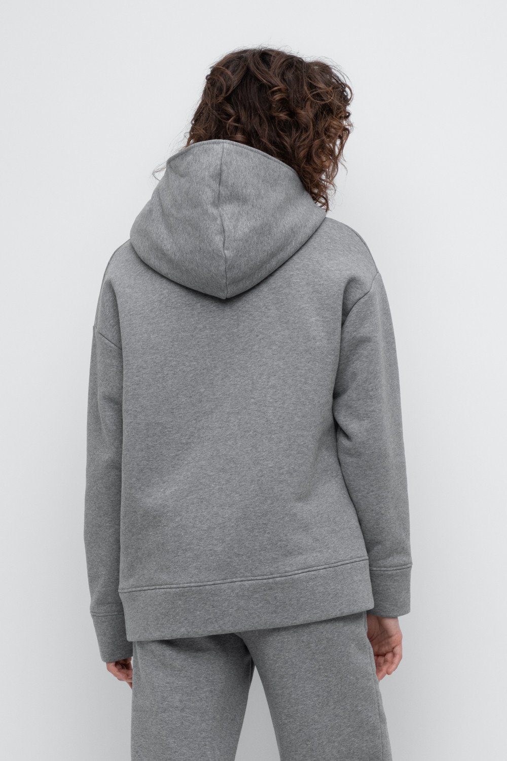 Теплая толстовка с капюшоном и спущенными рукавами из мягкого футера трехнитки. Уютный капюшон с подкладом из супрема. Карманы в боковых швах.