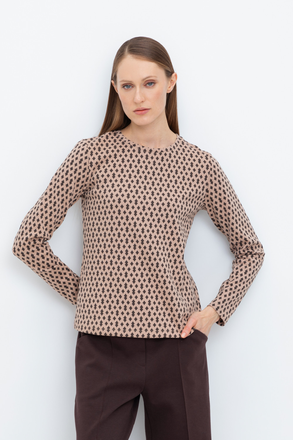 Базовый джемпер из плотного набивного трикотажа интерлок .