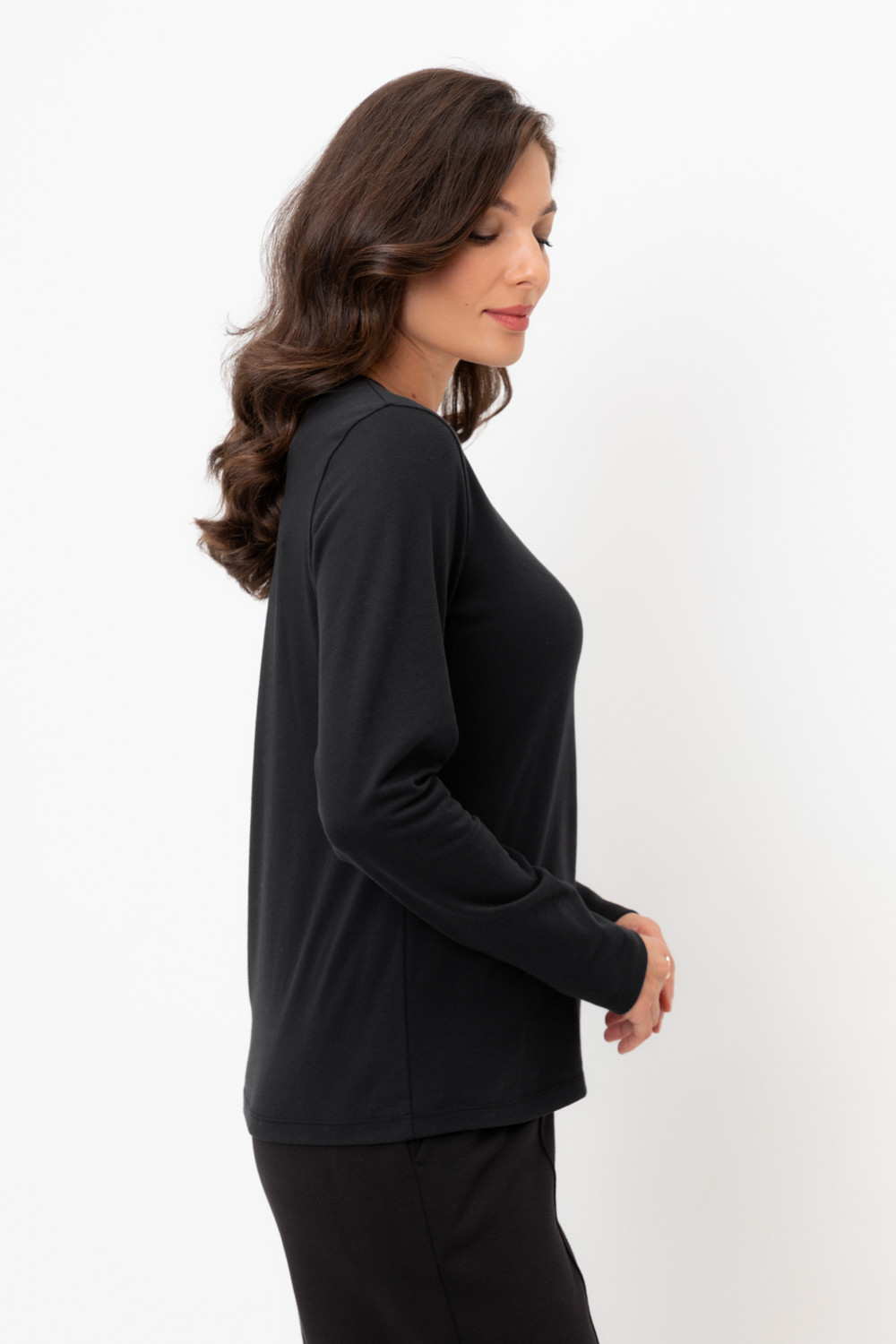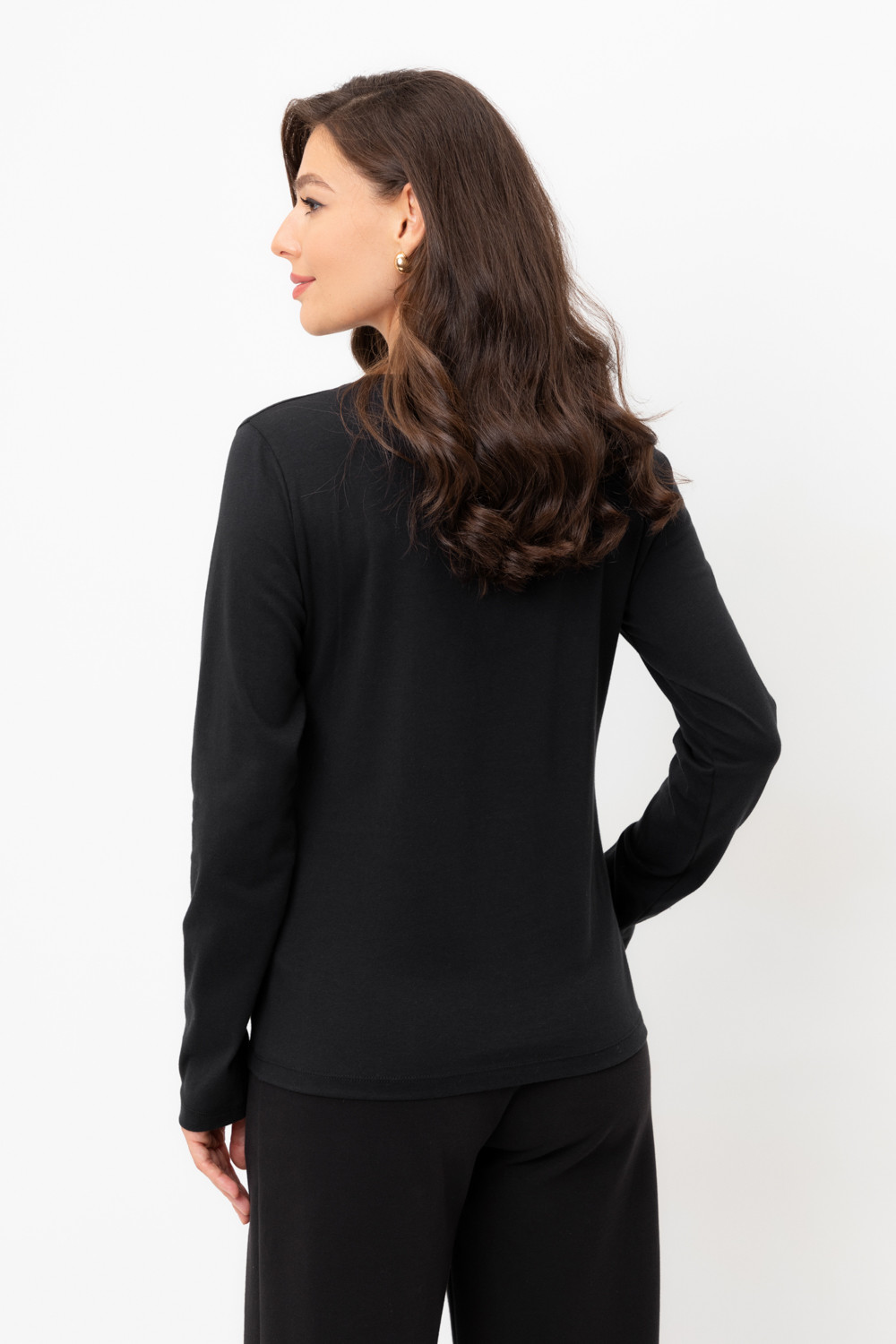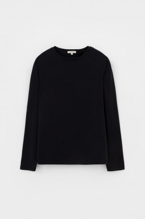 Базовый лонгслив из плотного однотонного трикотажа супрем с добавлением спандекса.