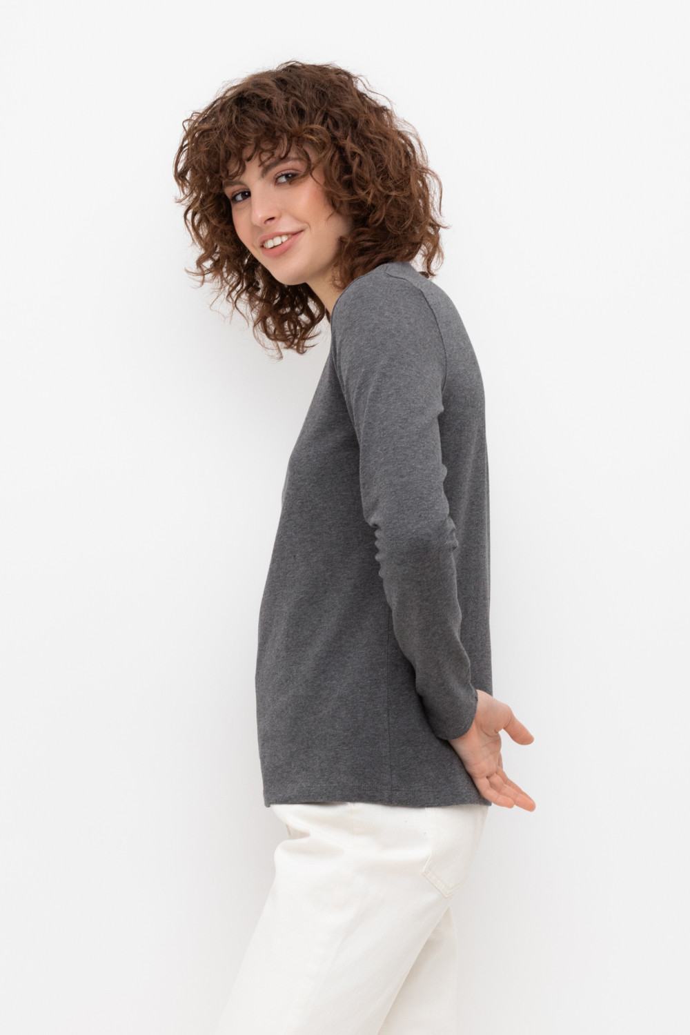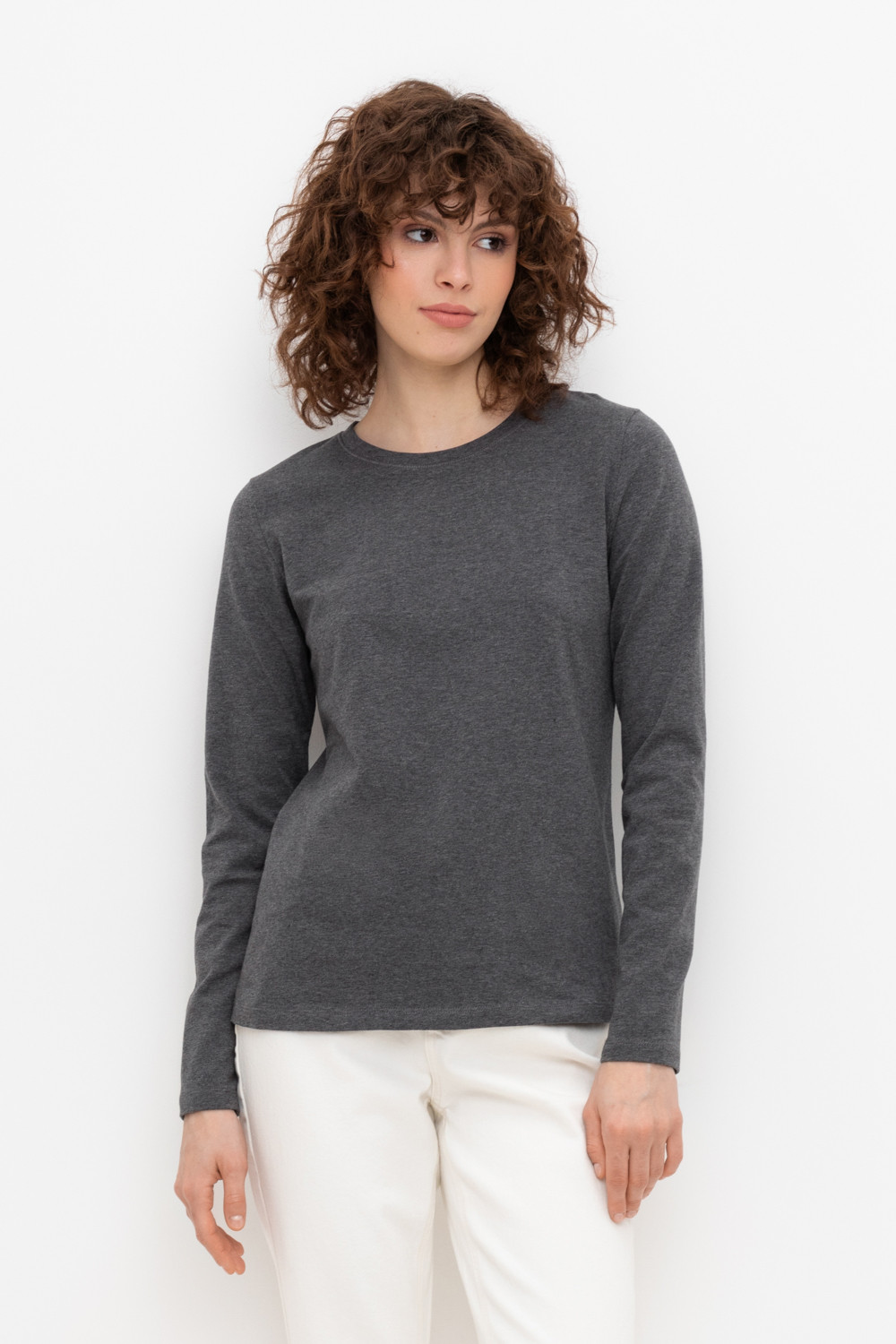 Базовый лонгслив из плотного однотонного трикотажа супрем с добавлением спандекса.