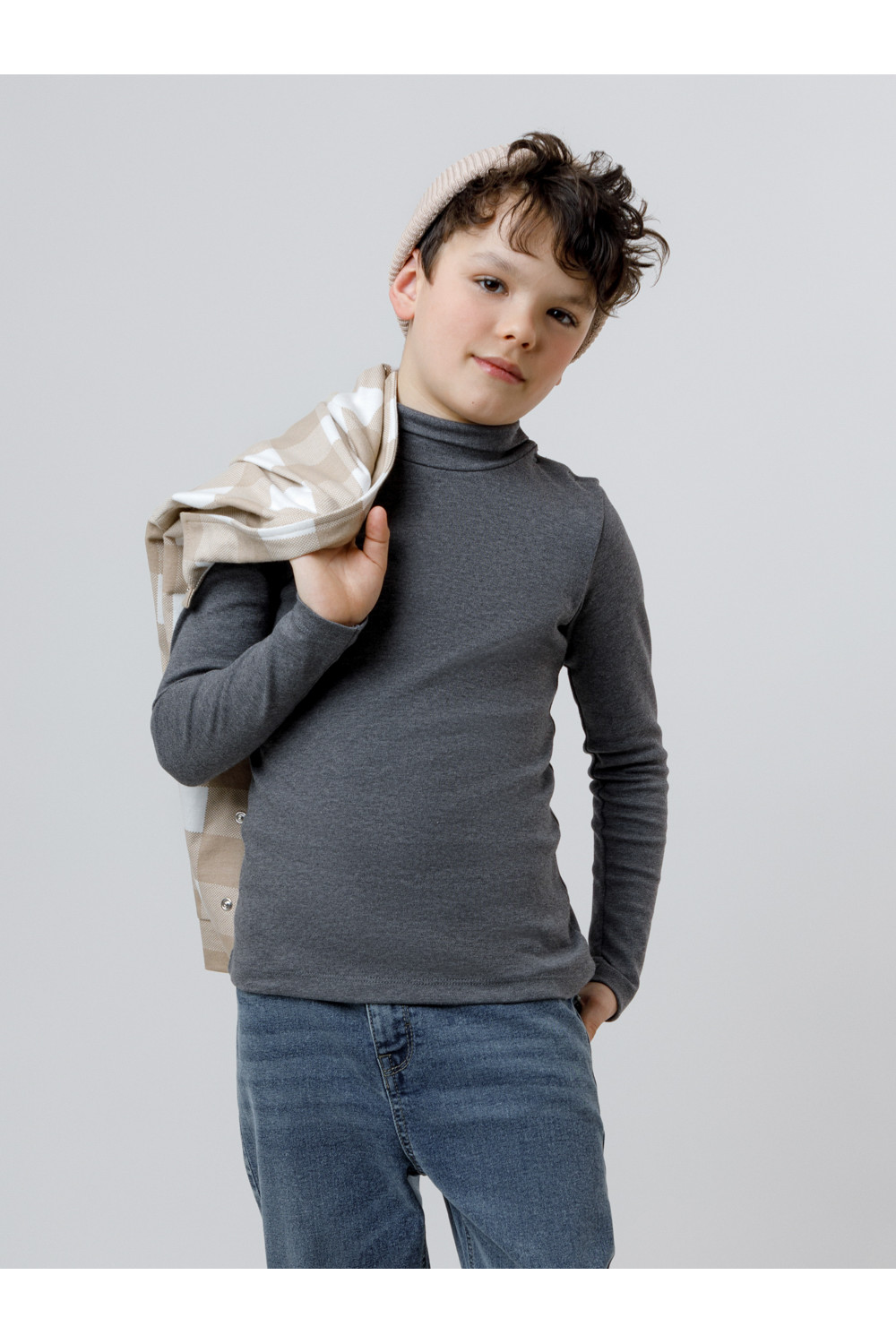 Однотонная водолазка с длинными рукавами. Выполнена из мягкого трикотажа интерлок. Высокое горло застёгивается на кнопки и защищает шею от переохлаждения.