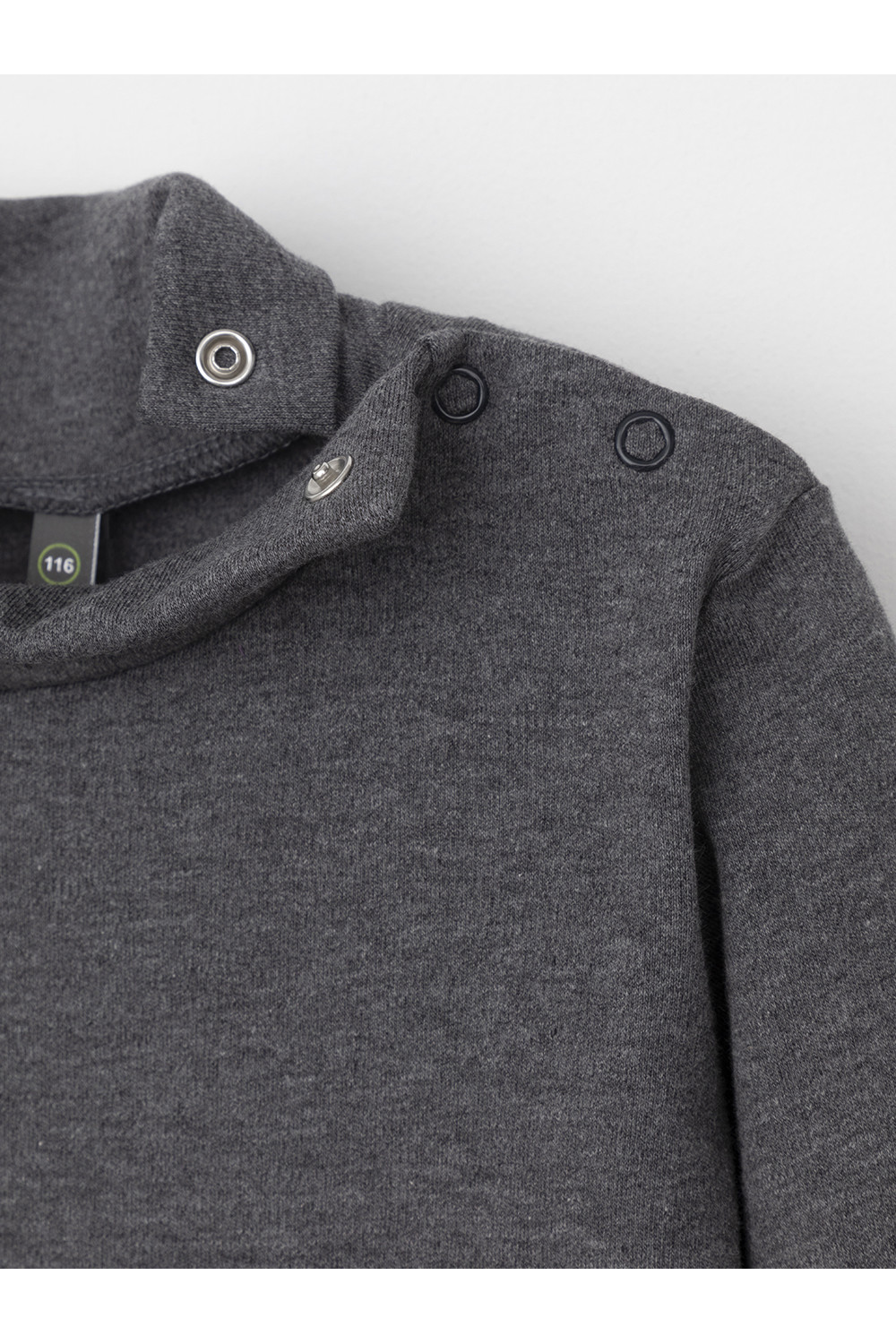 Однотонная водолазка с длинными рукавами. Выполнена из мягкого трикотажа интерлок. Высокое горло застёгивается на кнопки и защищает шею от переохлаждения.