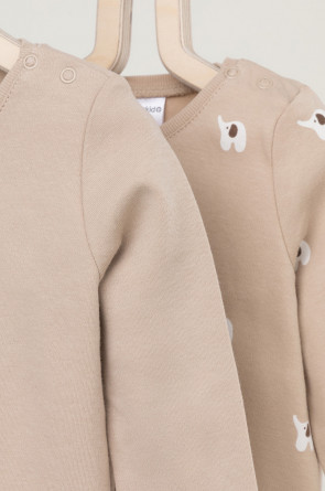 Джемперы в упаковке 2 шт для новорождённых из мягкого, эластичного трикотажа, произведённого из натурального хлопка. Изделие застёгивается на кнопки на плече. Оригинальные набивки выполнены из стойких, гипоаллергенных текстильных красителей. Все трикотажные полотна производятся в соответствии с нормами Швейцарского сертификата ЭкоТекс.