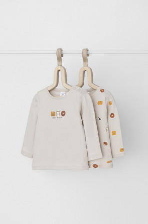 Джемперы в упаковке 2 шт для новорождённых из мягкого, эластичного трикотажа, произведённого из натурального хлопка. Изделие застёгивается на кнопки на плече. Оригинальные набивки выполнены из стойких, гипоаллергенных текстильных красителей. Все трикотажные полотна производятся в соответствии с нормами Швейцарского сертификата ЭкоТекс.