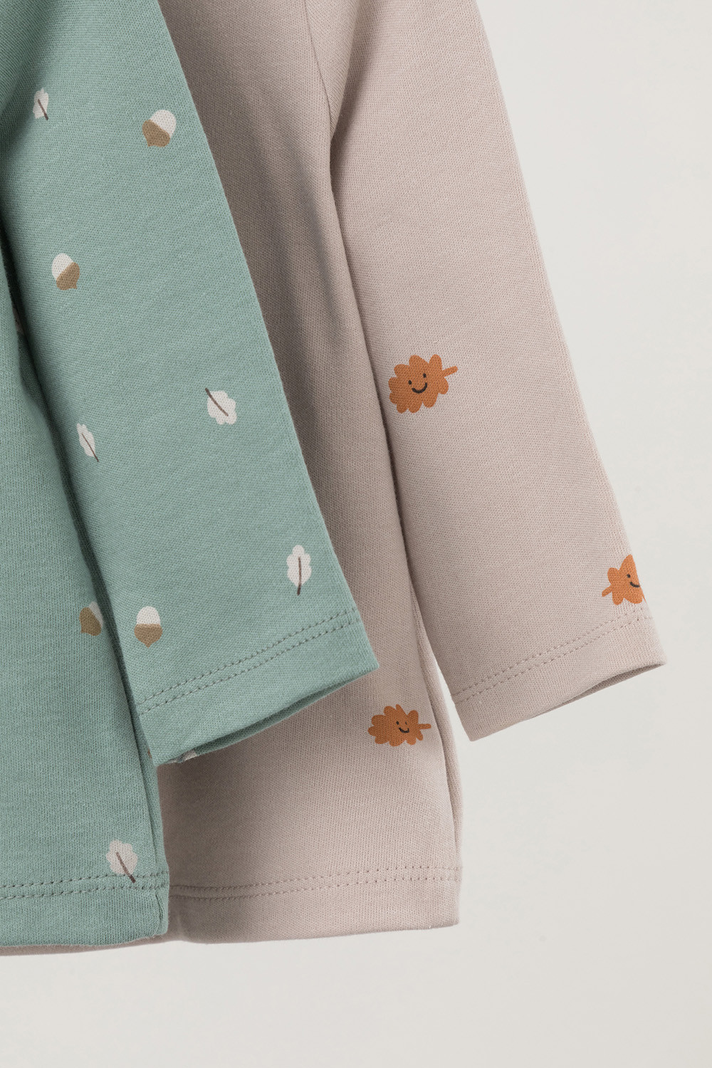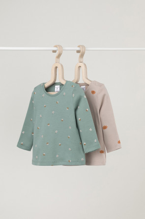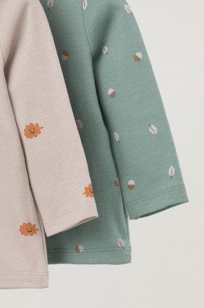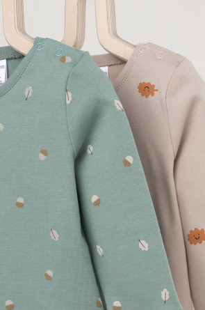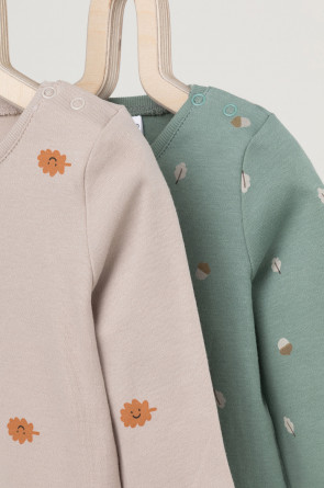 Джемперы в упаковке 2 шт для новорождённых из мягкого, эластичного трикотажа, произведённого из натурального хлопка. Изделие застёгивается на кнопки на плече. Оригинальные набивки выполнены из стойких, гипоаллергенных текстильных красителей. Все трикотажные полотна производятся в соответствии с нормами Швейцарского сертификата ЭкоТекс.