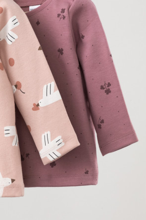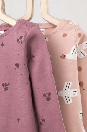 Джемперы в упаковке 2 шт для новорождённых из мягкого, эластичного трикотажа, произведённого из натурального хлопка. Изделие застёгивается на кнопки на плече. Оригинальные набивки выполнены из стойких, гипоаллергенных текстильных красителей. Все трикотажные полотна производятся в соответствии с нормами Швейцарского сертификата ЭкоТекс.