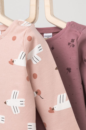 Джемперы в упаковке 2 шт для новорождённых из мягкого, эластичного трикотажа, произведённого из натурального хлопка. Изделие застёгивается на кнопки на плече. Оригинальные набивки выполнены из стойких, гипоаллергенных текстильных красителей. Все трикотажные полотна производятся в соответствии с нормами Швейцарского сертификата ЭкоТекс.