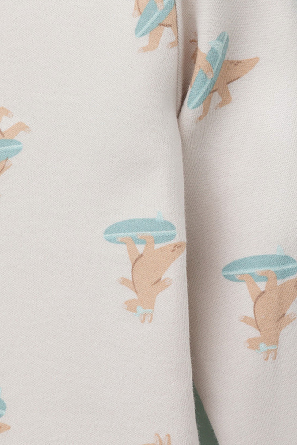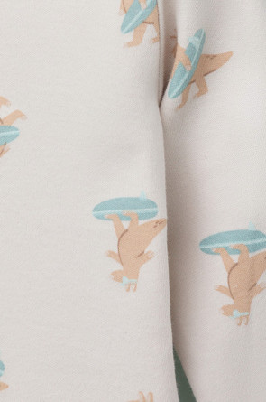 Джемпер для новорожденных из мягкого трикотажа, произведенного из натурального хлопка. Изделие застегивается на плече на кнопки. Оригинальная набивка выполнена из стойких, гипоаллергенных текстильных красителей. Все трикотажные полотна производятся в соответсвии с нормами Швейцарского сертификата ЭкоТекс.