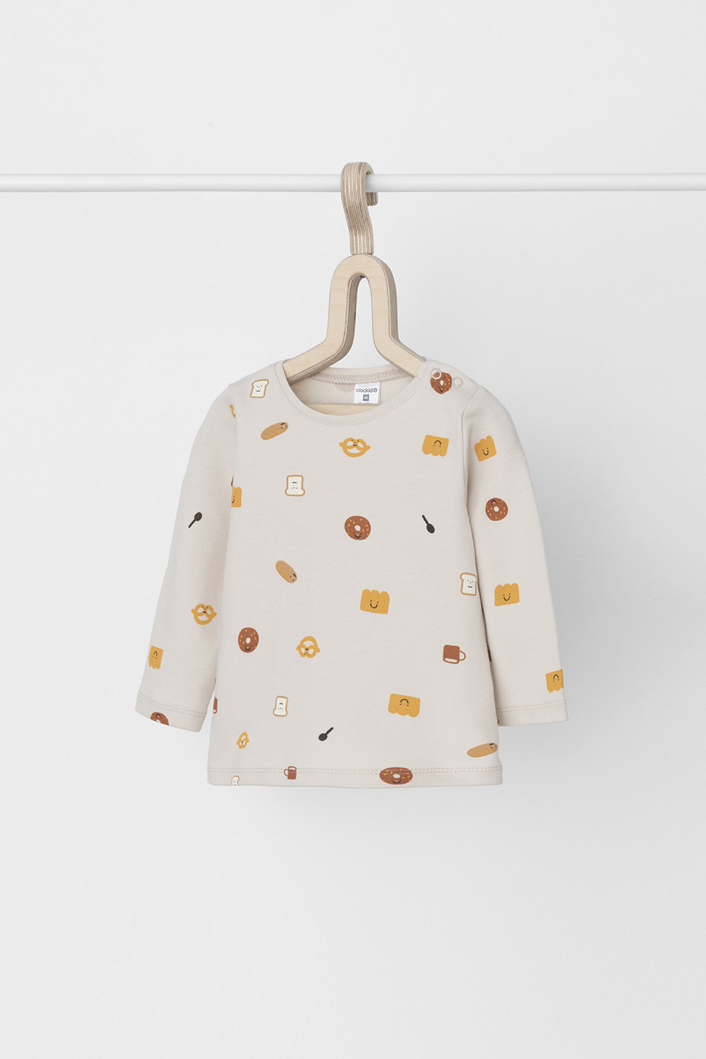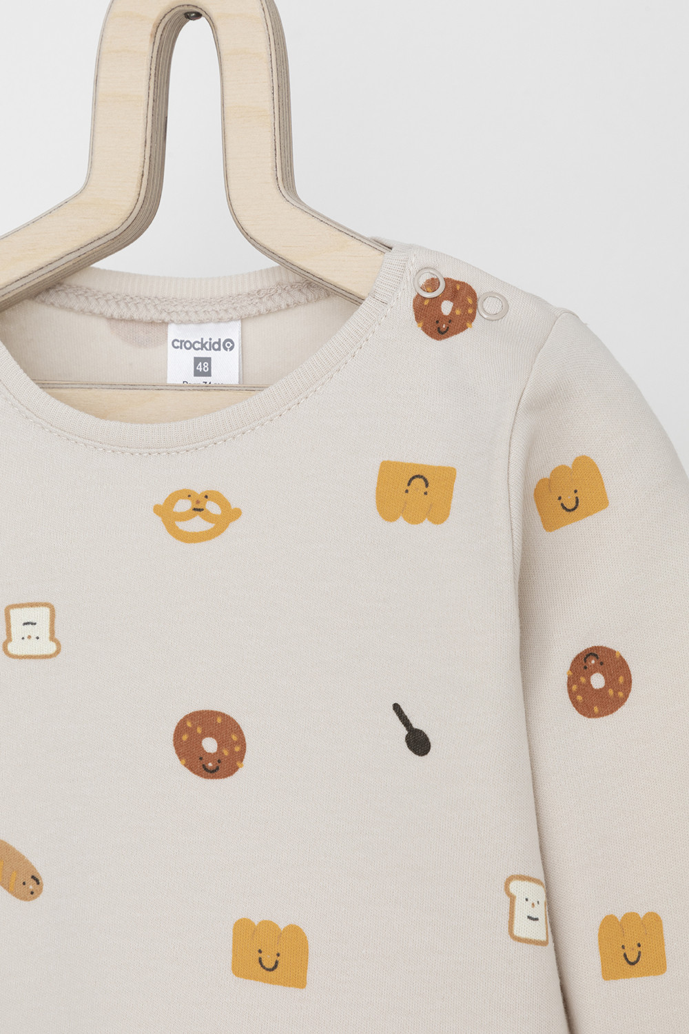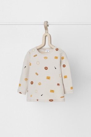 Джемпер для новорожденных из мягкого трикотажа, произведенного из натурального хлопка. Изделие застегивается на плече на кнопки. Оригинальная набивка выполнена из стойких, гипоаллергенных текстильных красителей. Все трикотажные полотна производятся в соответсвии с нормами Швейцарского сертификата ЭкоТекс.