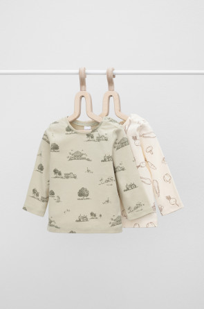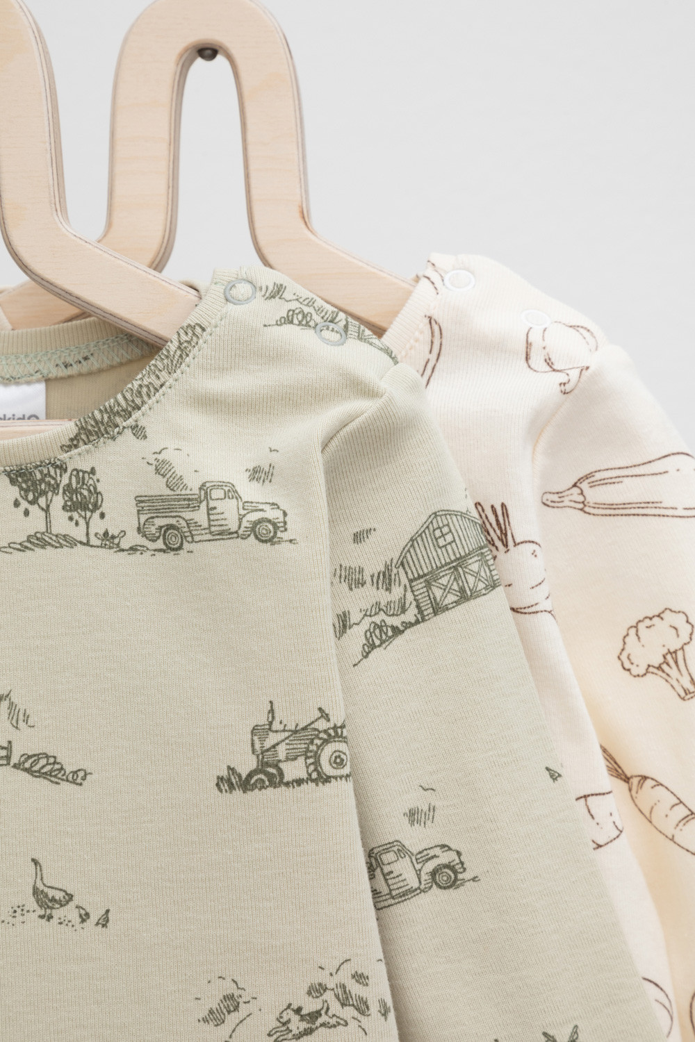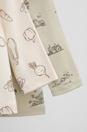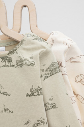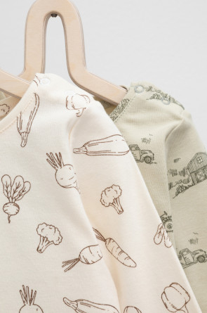 Джемпер в упаковке 2 шт для новорожденных из мягкого эластичного трикотажа - рибаны, произведенного из натурального хлопка. У изделия эластичные манжеты, застежка на плече на кнопки. Оригинальная набивка выполнена из стойких, гипоаллергенных текстильных красителей. Все трикотажные полотна производятся в соответсвии с нормами Швейцарского сертификата ЭкоТекс.