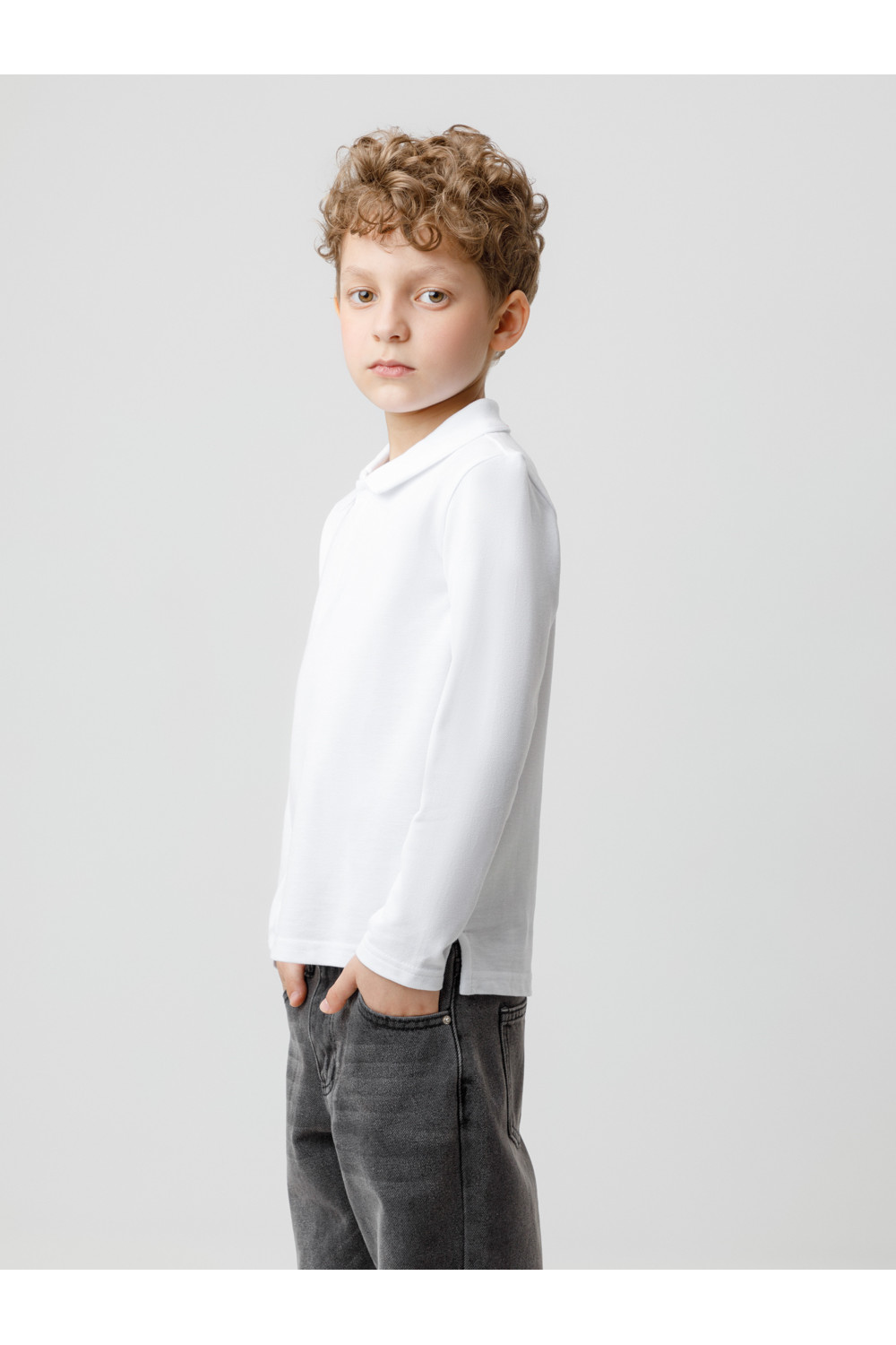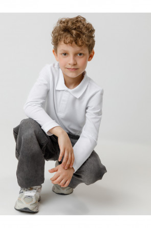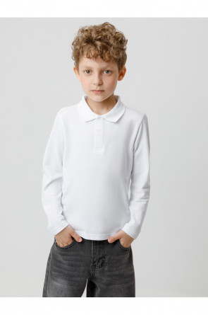 Поло для мальчика из высококачественного трикотажного полотна пике. У изделия вязаный воротник, манжеты и застежка спереди на пуговицы.