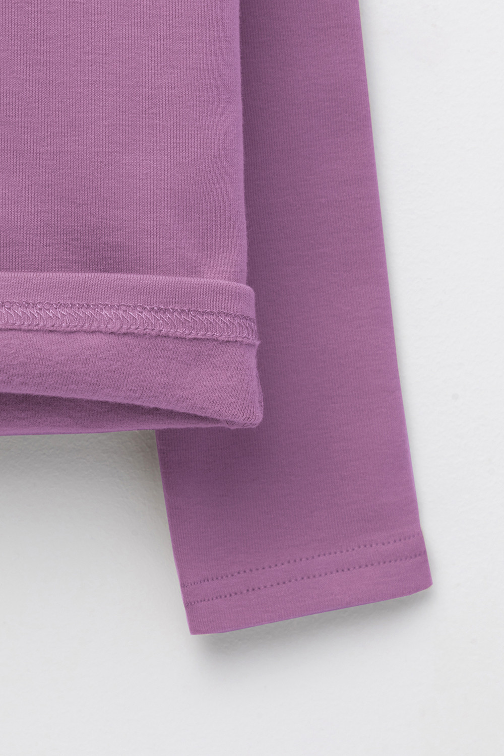 Однотонный джемпер с длинными рукавами. Сшит из высококачественной эластичной рибаны с начёсом. Эластан в составе позволяет изделию быть более эластичным и дольше сохранять опрятный внешний вид. Обтачка горловины выполнена из основного материала.