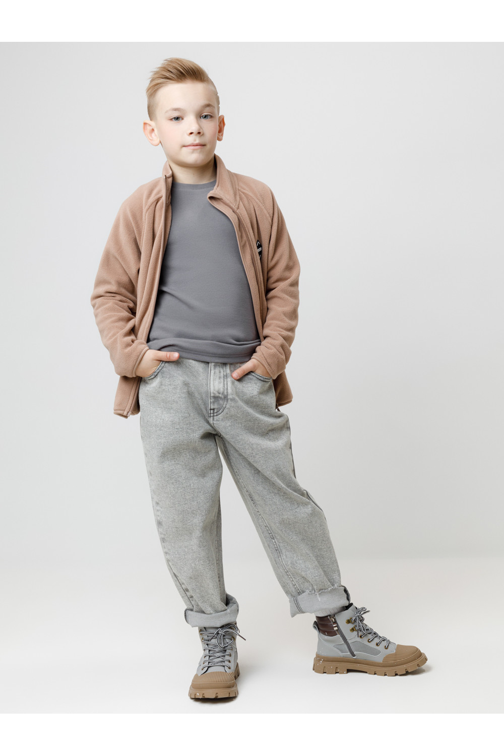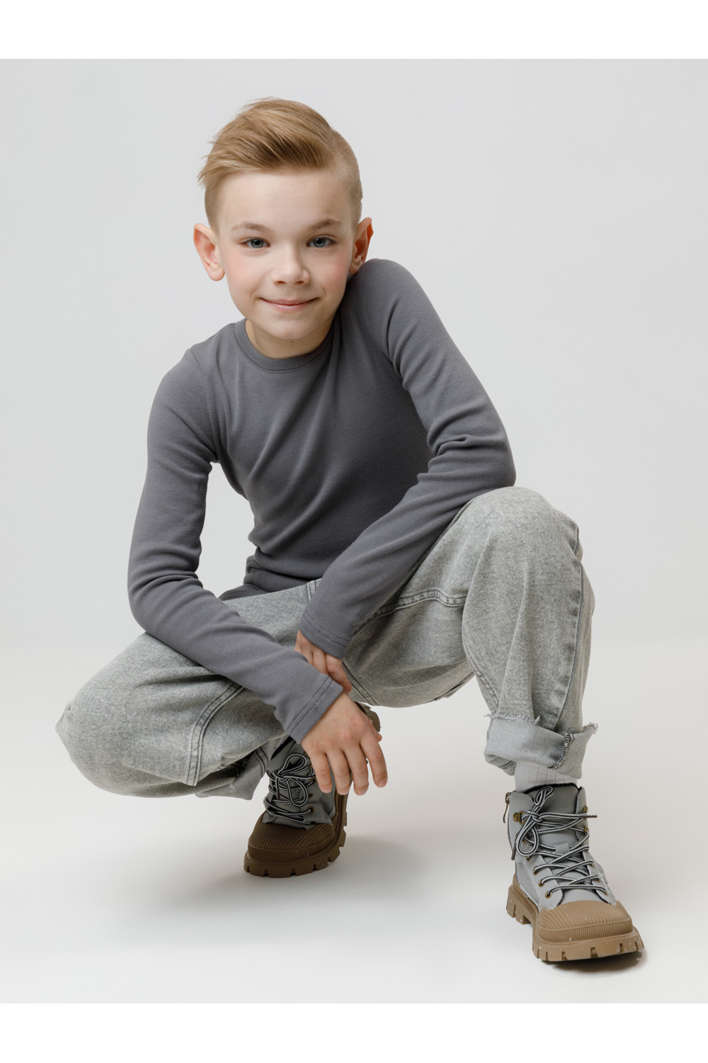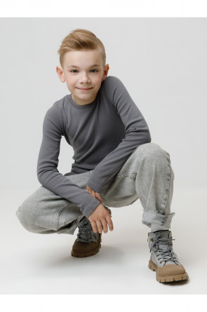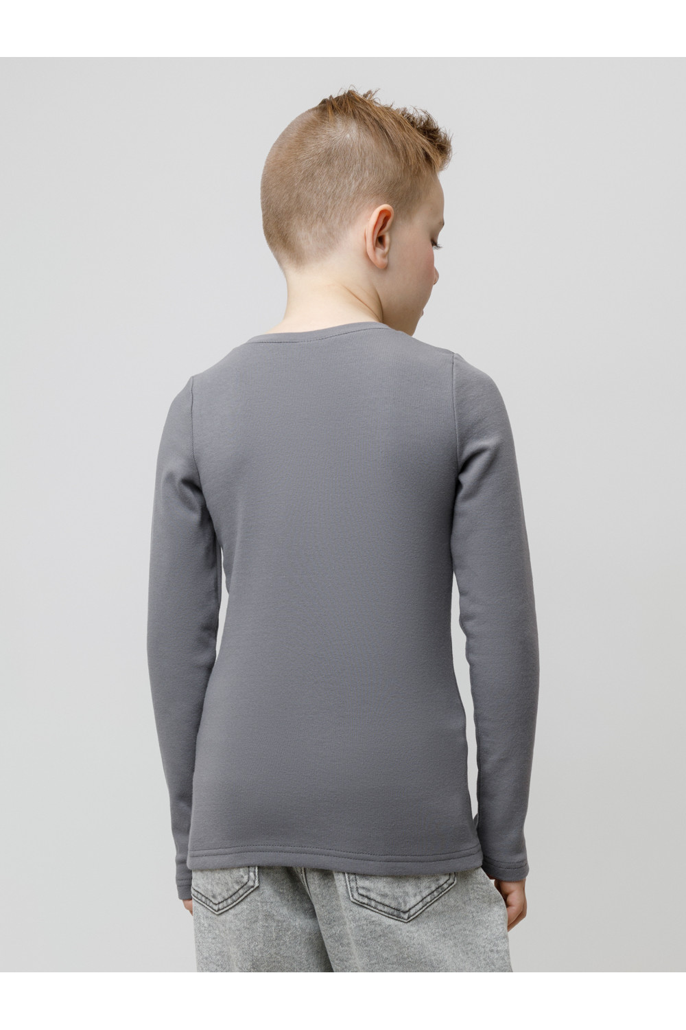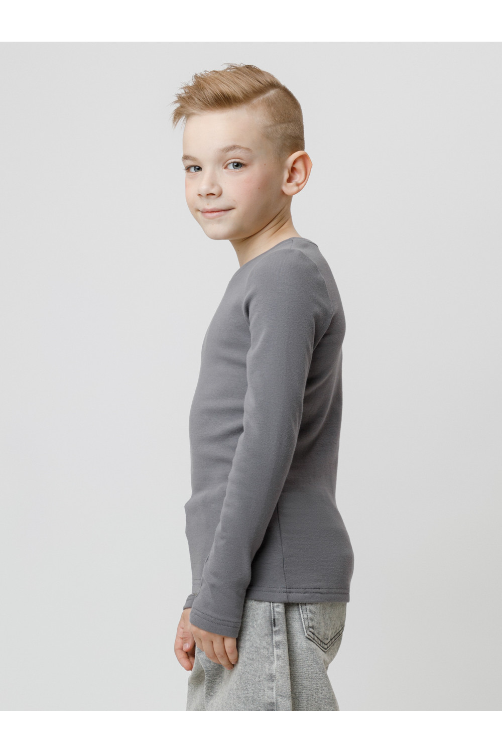 Однотонный джемпер с длинными рукавами. Сшит из высококачественной эластичной рибаны с начёсом. Эластан в составе позволяет изделию быть более эластичным и дольше сохранять опрятный внешний вид. Обтачка горловины выполнена из основного материала.