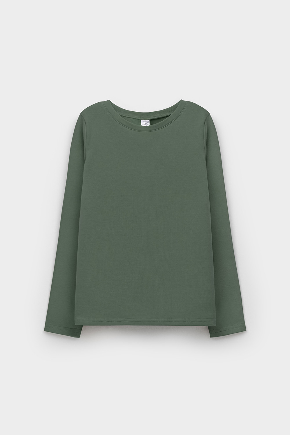 Однотонный джемпер с длинными рукавами. Сшит из высококачественной эластичной рибаны с начёсом. Эластан в составе позволяет изделию быть более эластичным и дольше сохранять опрятный внешний вид. Обтачка горловины выполнена из основного материала.