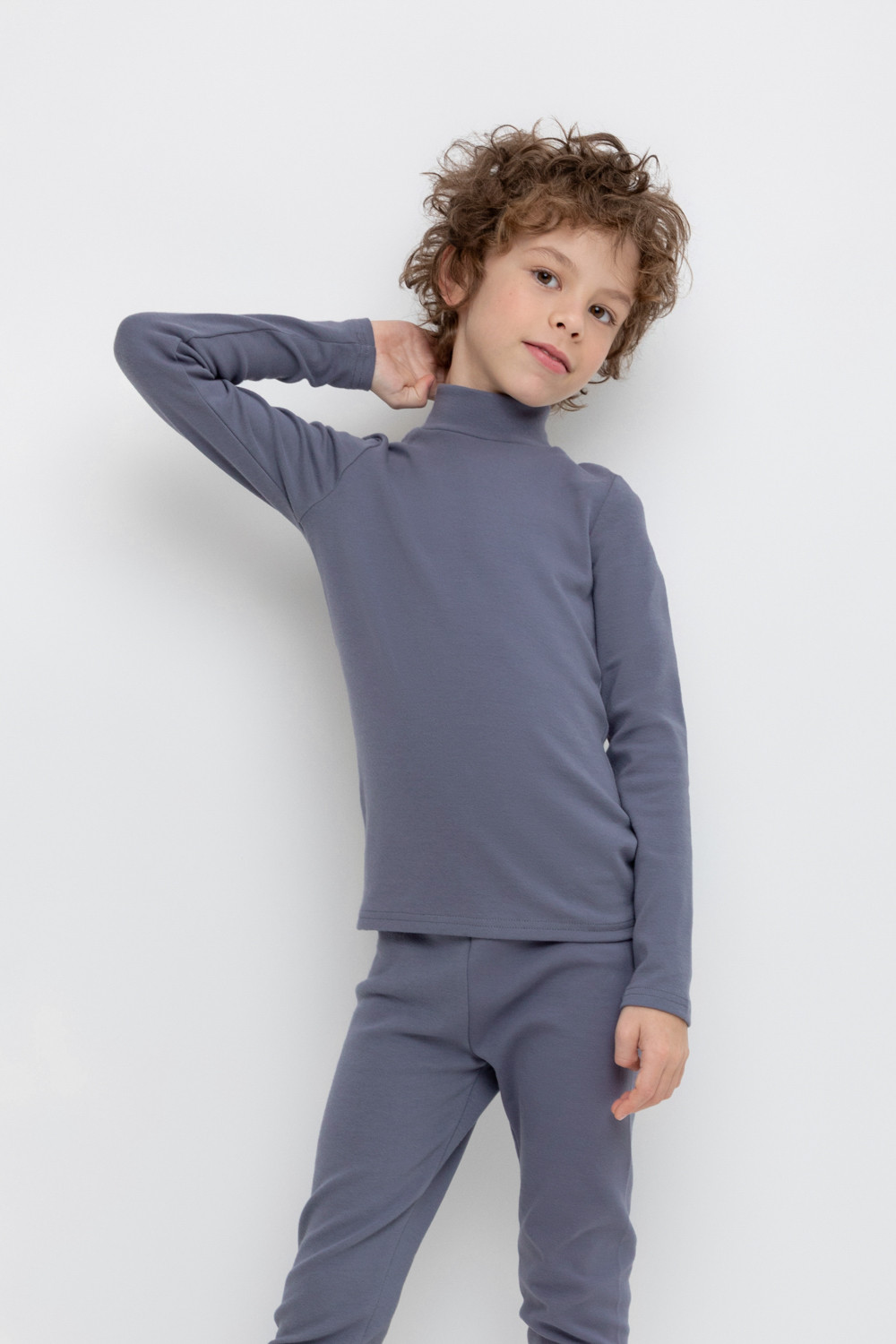 Однотонная водолазка с высоким воротником-стойкой и длинными рукавами. Выполнена из высококачественной эластичной рибаны с начёсом. Эластан в составе позволяет изделию быть более эластичным и дольше сохранять опрятный внешний вид. Воротник защищает горло от прохладного воздуха.