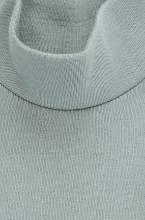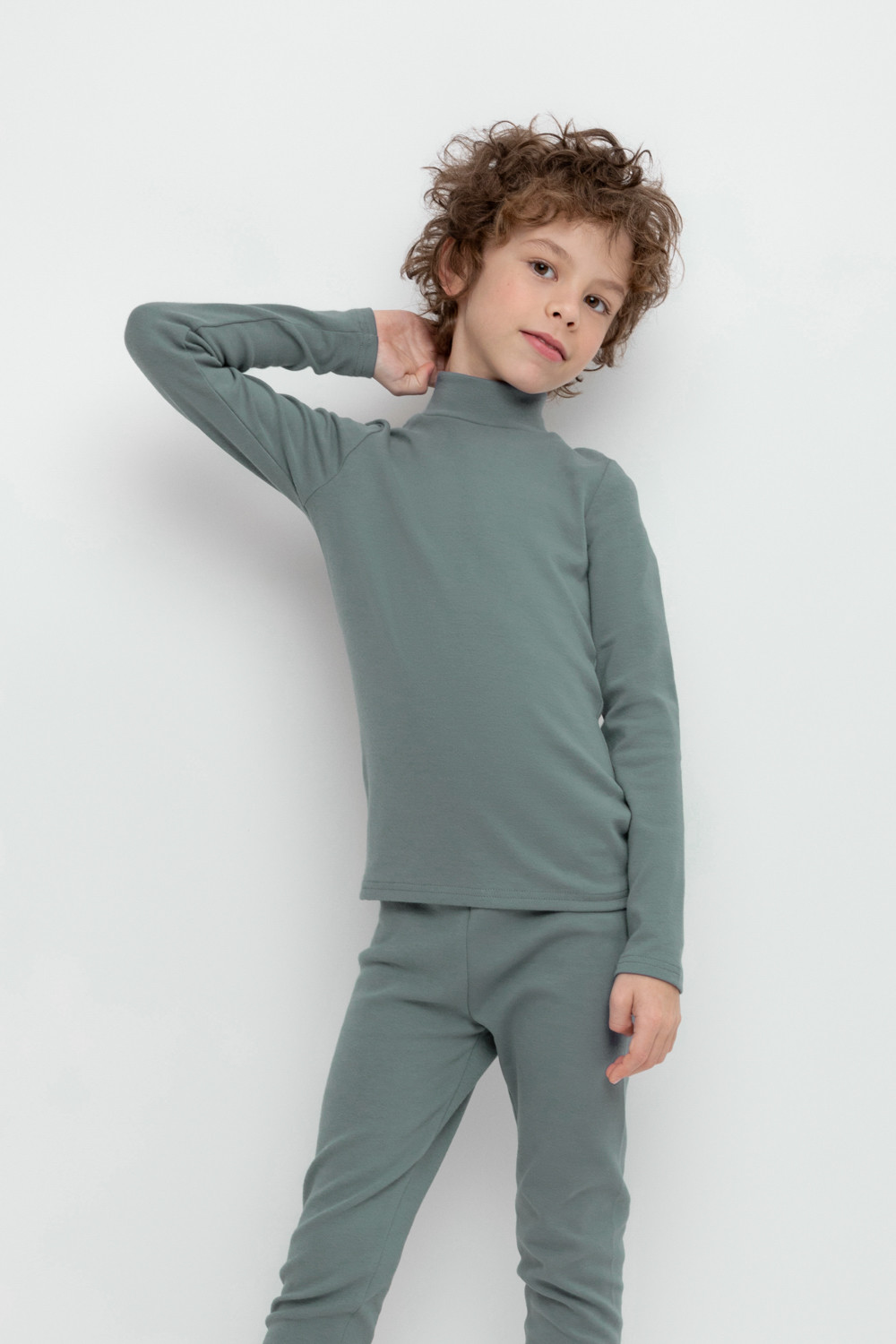 Однотонная водолазка с высоким воротником-стойкой и длинными рукавами. Выполнена из высококачественной эластичной рибаны с начёсом. Эластан в составе позволяет изделию быть более эластичным и дольше сохранять опрятный внешний вид. Воротник защищает горло от прохладного воздуха.