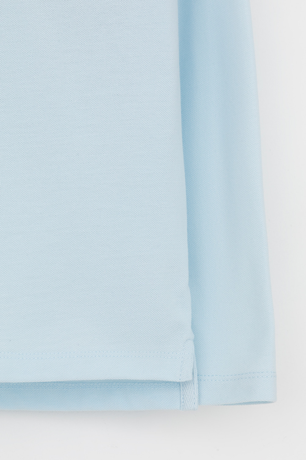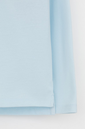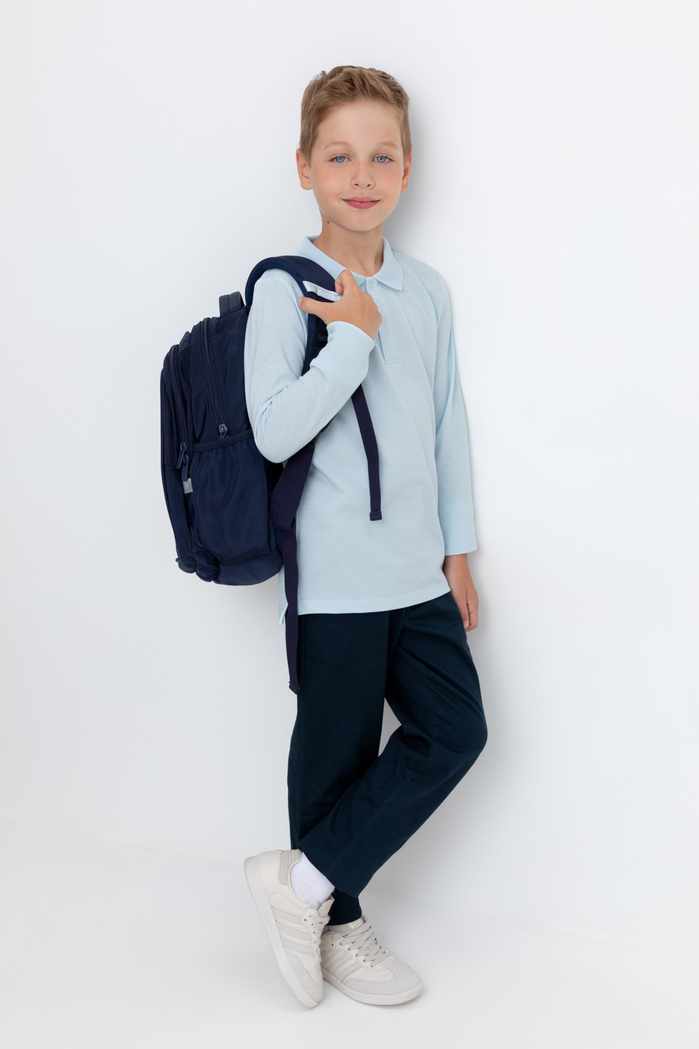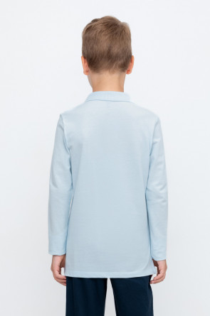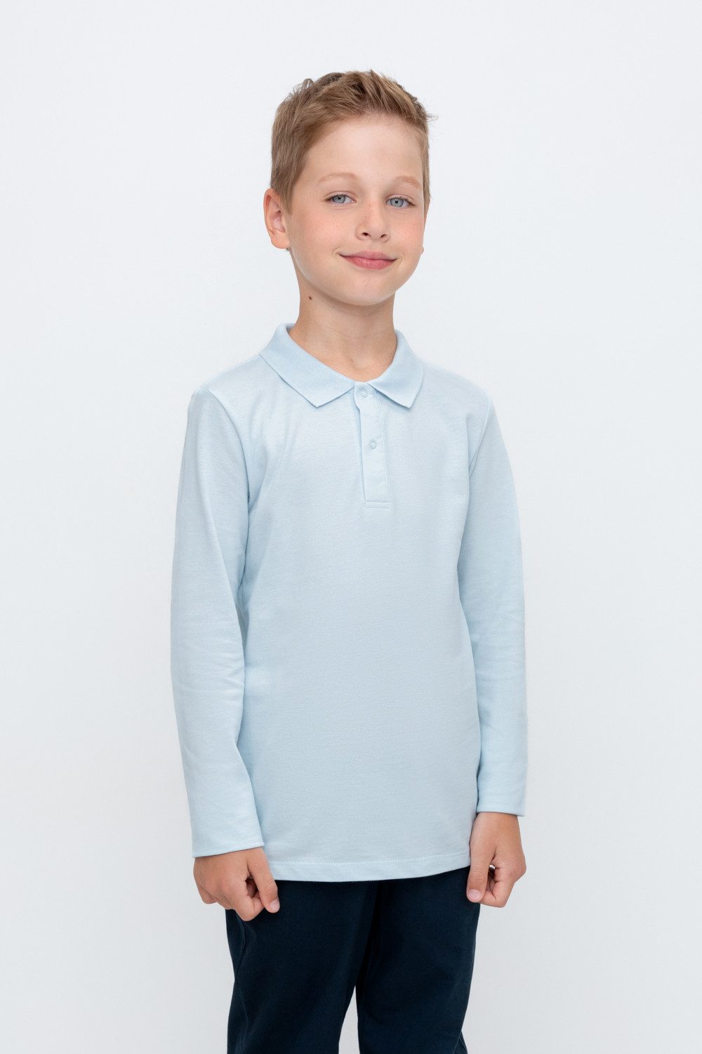 Джемпер поло с длинными рукавами для мальчика из трикотажного полотна пике. Вязаный воротник. Удобная застежка спереди. По бокам разрезы, обработанные киперной лентой.