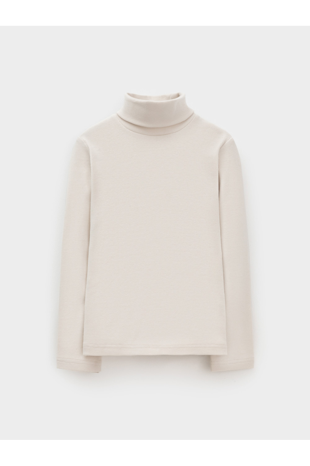 Однотонная базовая водолазка с длинными втачными рукавами. Сшита из эластичного трикотажа кашкорсе с эластаном. Рукава и низ изделия обработаны плоскими швами.