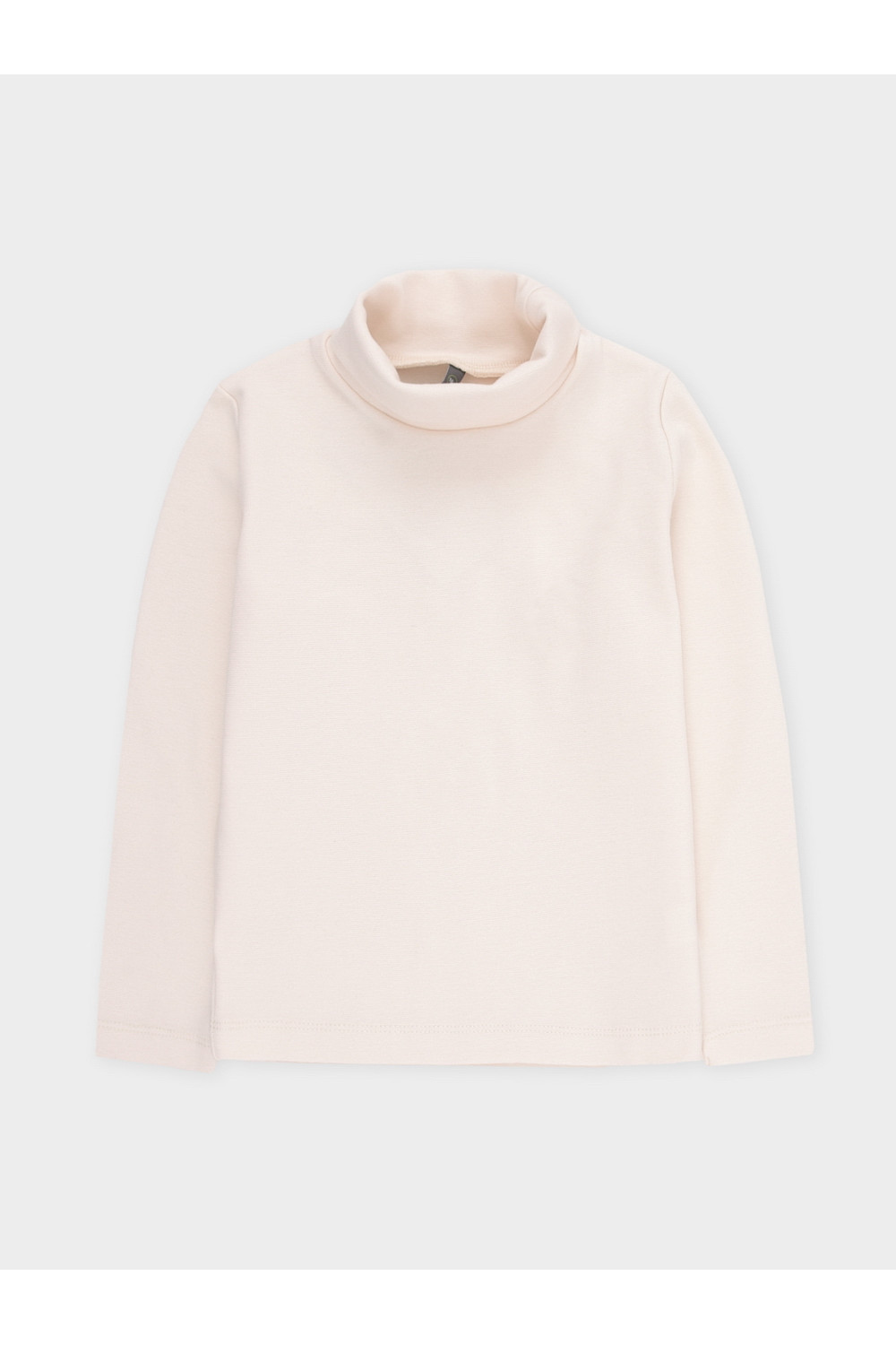 Однотонная водолазка для девочки из эластичного трикотажа рибана. Высокий воротник, длинные рукава.