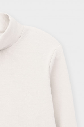Однотонная водолазка с высоким воротником-стойкой и длинными рукавами. Выполнена из высококачественной эластичной рибаны с начёсом. Эластан в составе позволяет изделию быть более эластичным и дольше сохранять форму. Воротник защищает горло от прохладного воздуха.