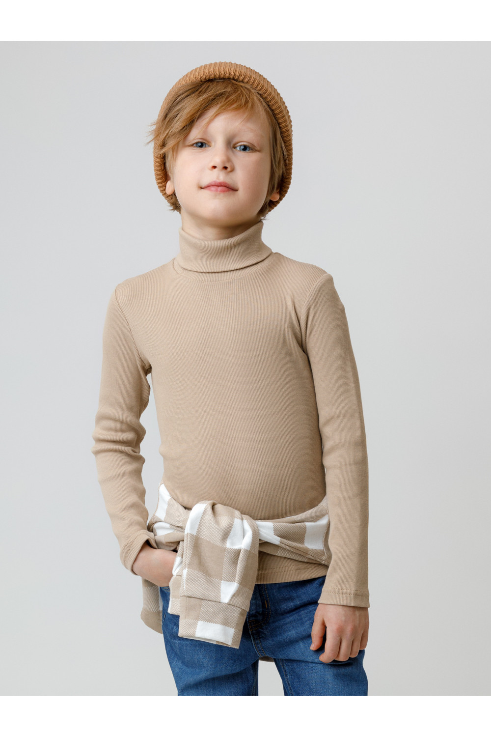 Однотонная водолазка из эластичного трикотажа в рубчик для мальчика. Изделие сохраняет форму и стойкий цвет после многочисленных стирок и идеально подходит на каждый день. Все трикотажные полотна производятся в соответствии с нормами швейцарского сертификата ЭкоТекс.