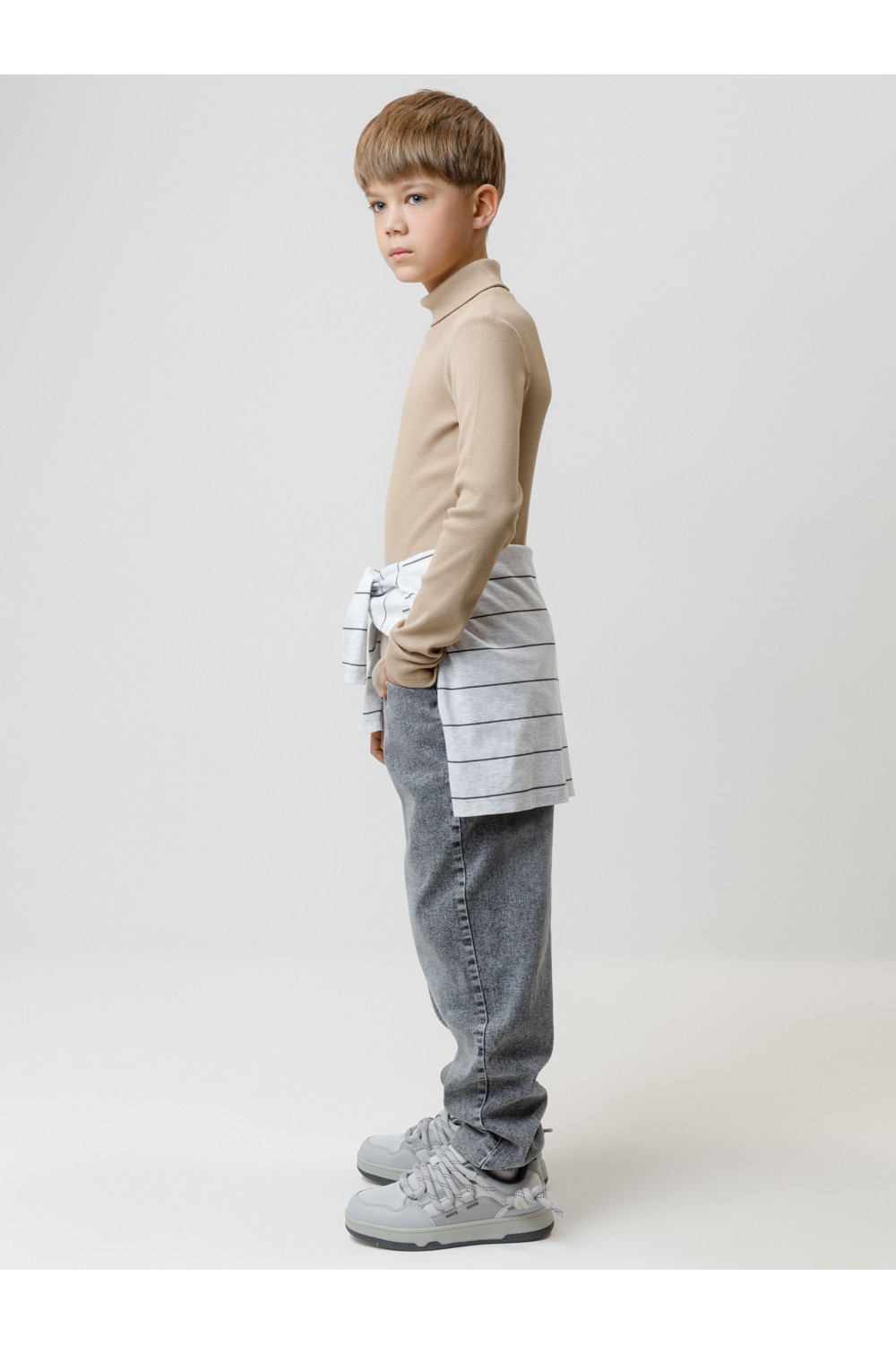 Однотонная водолазка из эластичного трикотажа в рубчик для мальчика. Изделие сохраняет форму и стойкий цвет после многочисленных стирок и идеально подходит на каждый день. Все трикотажные полотна производятся в соответствии с нормами швейцарского сертификата ЭкоТекс.