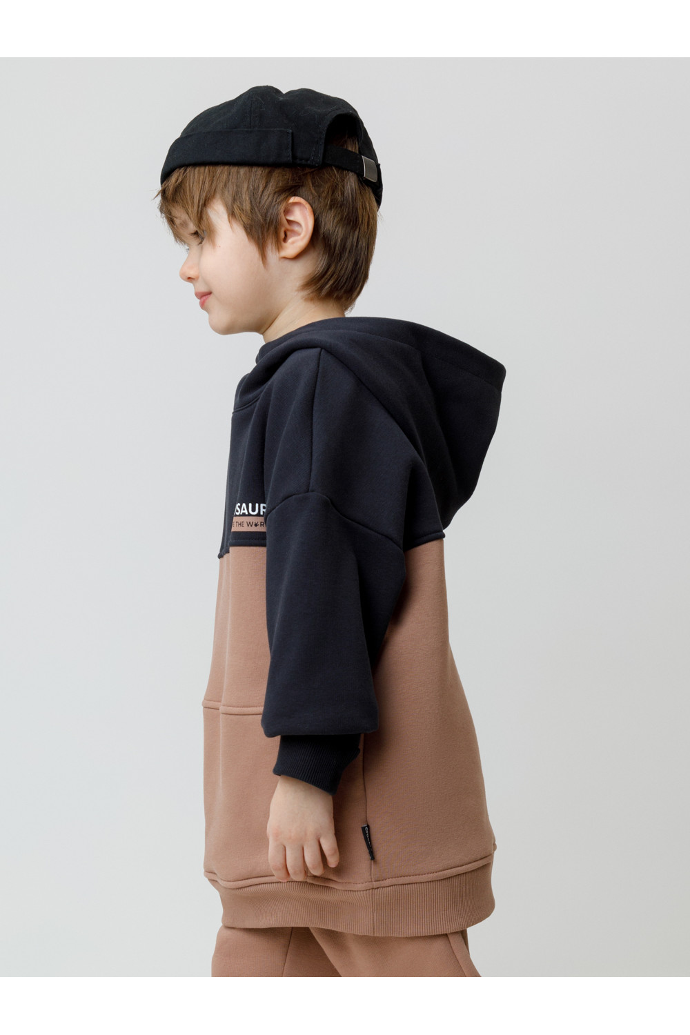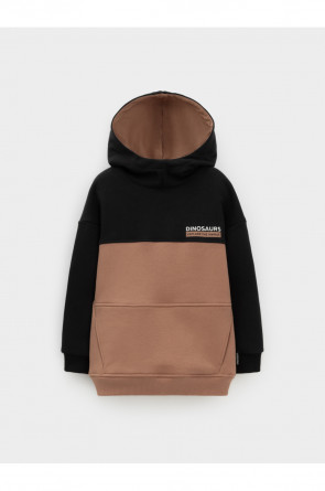 Худи с капюшоном для мальчика из тёплого футера с начёсом. Пояс и манжеты выполнены из мягкого эластичного трикотажа. Спереди карманы. Худи сохраняет форму и стойкий цвет после многочисленных стирок и идеально подходит на каждый день. Оригинальный принт выполнен из стойких текстильных гипоаллергенных красителей. Все трикотажные полотна производятся в соответствии с нормами швейцарского сертификата ЭкоТекс.