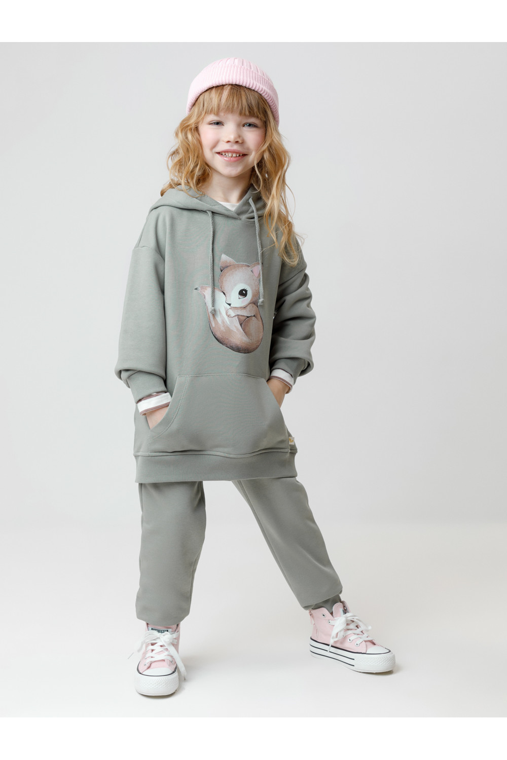 Худи с капюшоном для девочки из мягкого футера трёхнитки с начёсом. Пояс и манжеты выполнены из мягкого эластичного трикотажа. Худи сохраняет форму и стойкий цвет после многочисленных стирок и идеально подходит на каждый день. Оригинальный принт выполнен из стойких текстильных гипоаллергенных красителей. Все трикотажные полотна производятся в соответствии с нормами швейцарского сертификата ЭкоТекс.