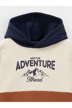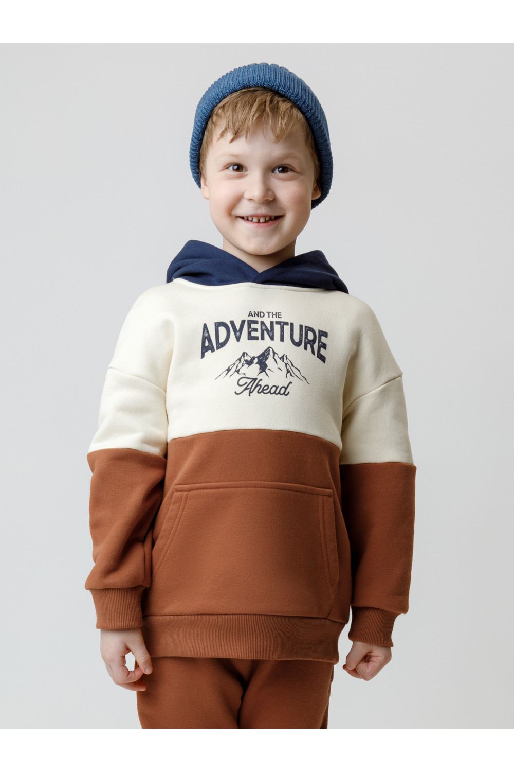 Худи с капюшоном для мальчика из тёплого футера с начёсом. Пояс и манжеты выполнены из мягкого эластичного трикотажа. Спереди удобный и вместительный карман-кенгуру. Худи сохраняет форму и стойкий цвет после многочисленных стирок и идеально подходит на каждый день. Оригинальный принт выполнен из стойких текстильных гипоаллергенных красителей. Все трикотажные полотна производятся в соответствии с нормами швейцарского сертификата ЭкоТекс.